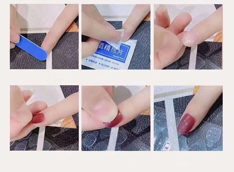 Jelly glue * 1 alcohol cotton * 1 nail file * 1 orange wood stick * 1 nail polish glue * 1 nail * 10