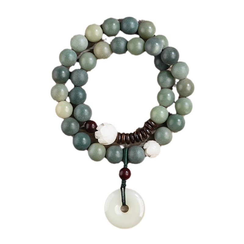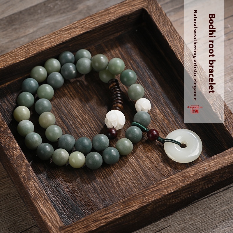Weathering Yin Leather Green Bodhi Root Beads Bracelet