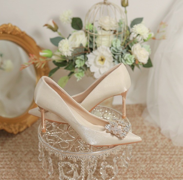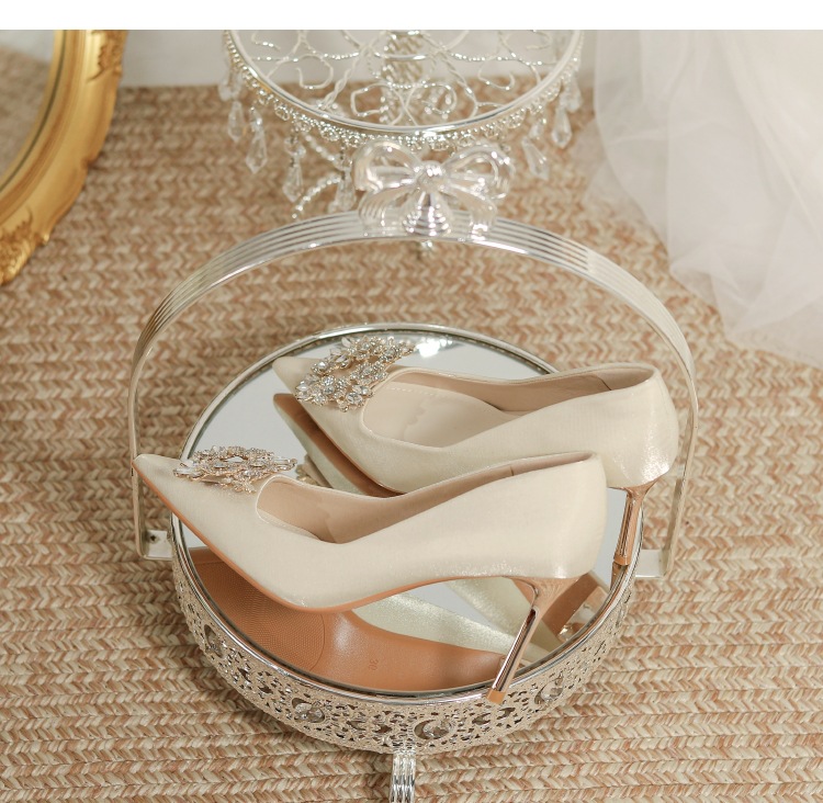 Wedding Dress Two-way Wear Pointed-toe Stiletto Bride Shallow Mouth Pumps Women High Heels