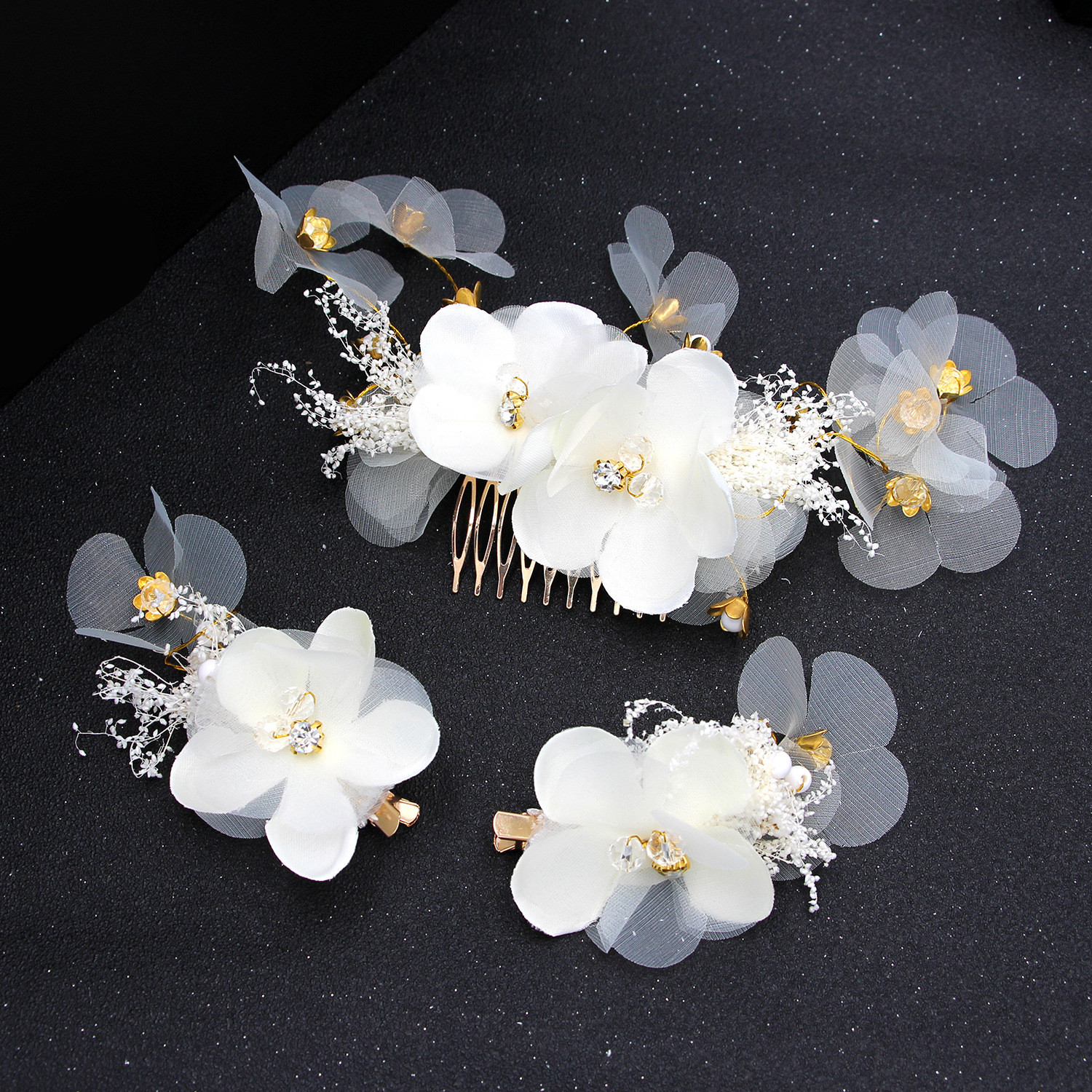 Wedding Dress With White Comb And Hair Accessory Set