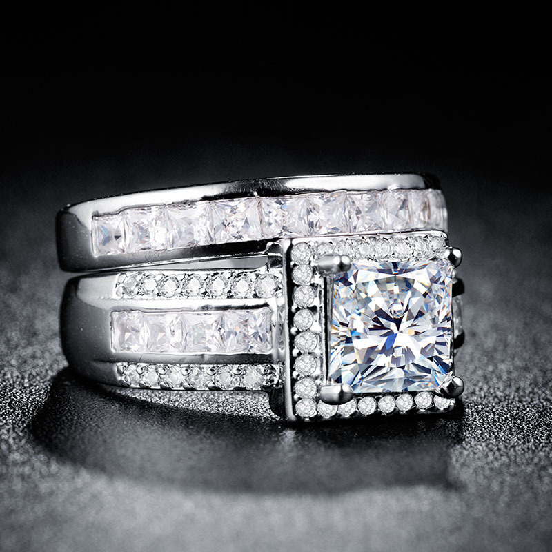 Wedding Engagement Ring Gold Plated Silver Zircon Square Diamond Couple Ring