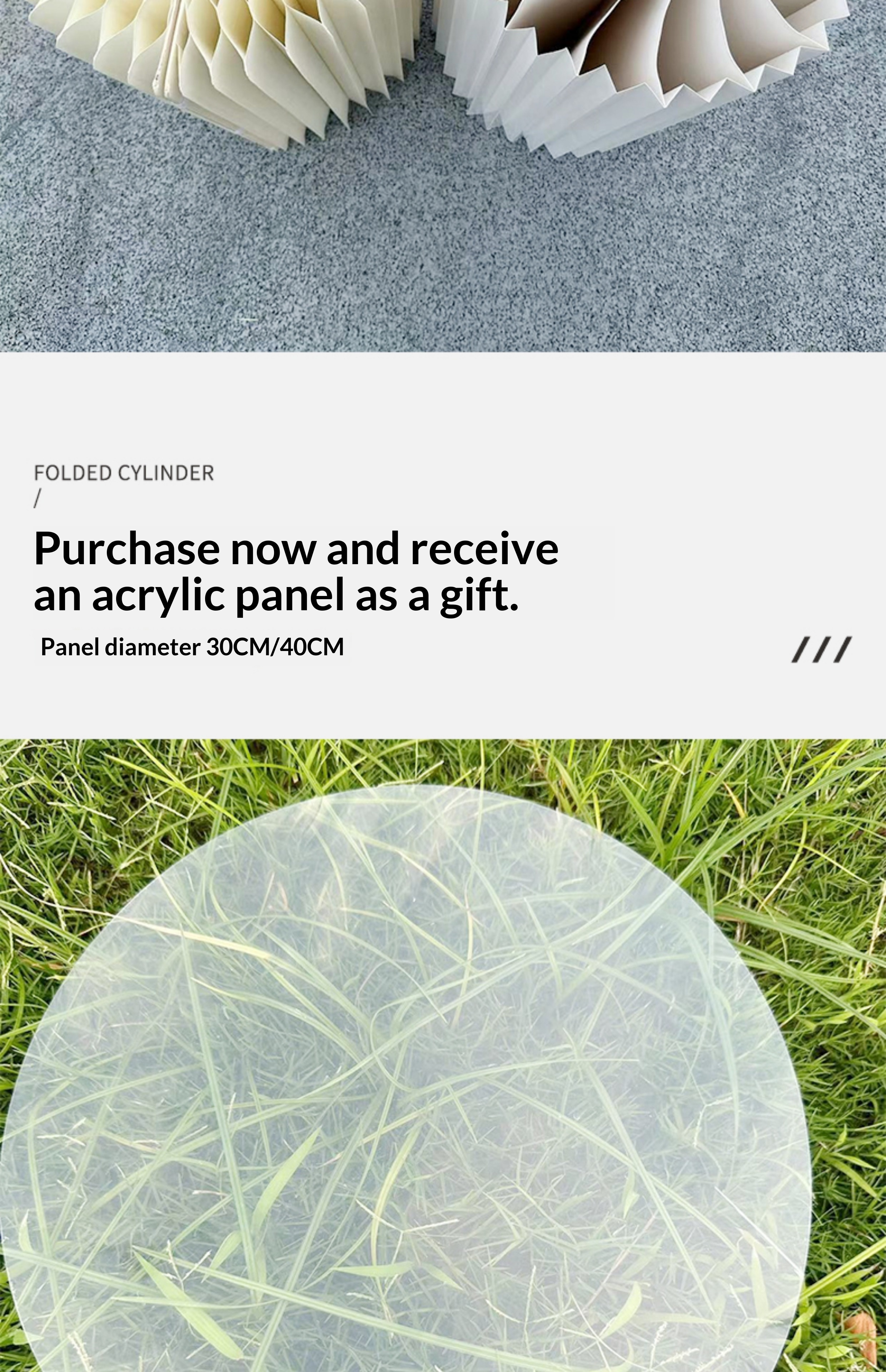 Specification: White regular model with a diameter of 30 centimeters and a height of 40/60/80 centimeters. Comes with a small three piece set of panels,