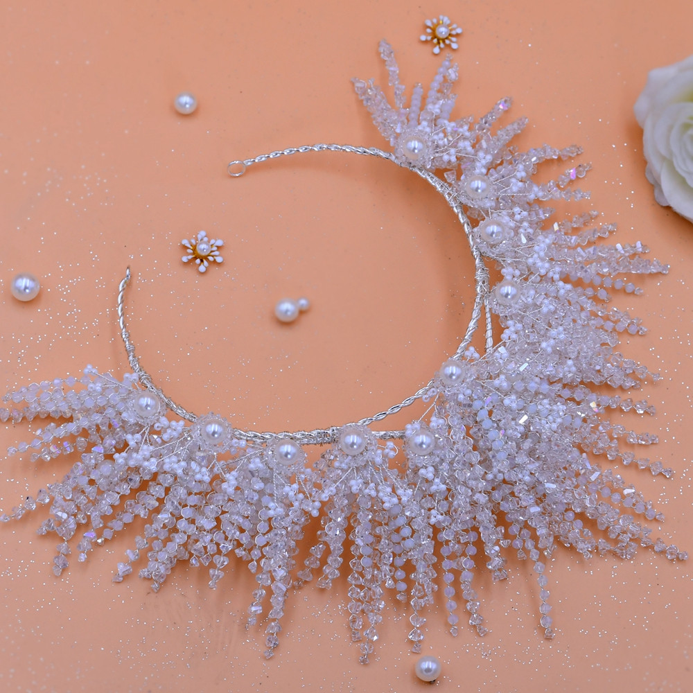 Wedding Headpiece Silver Handmade Crystal Big Crown