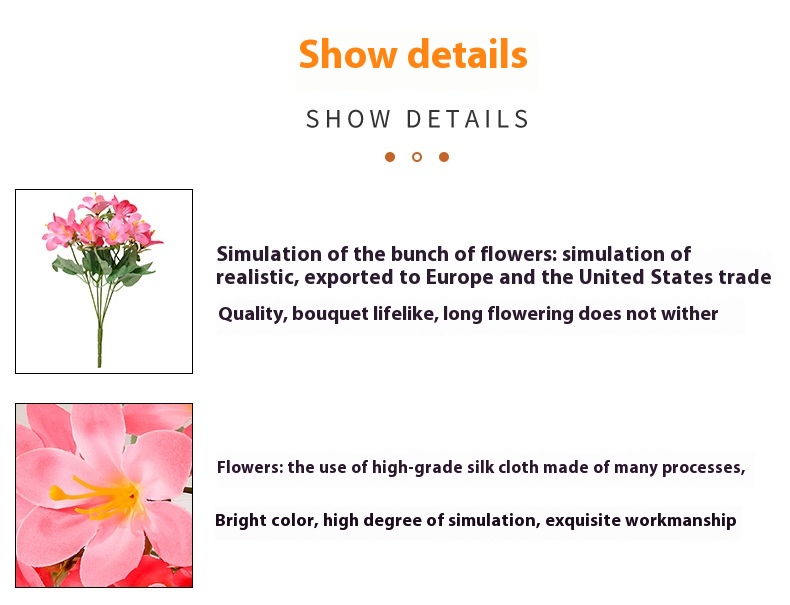 Material: plastic, soft glue, silk flower