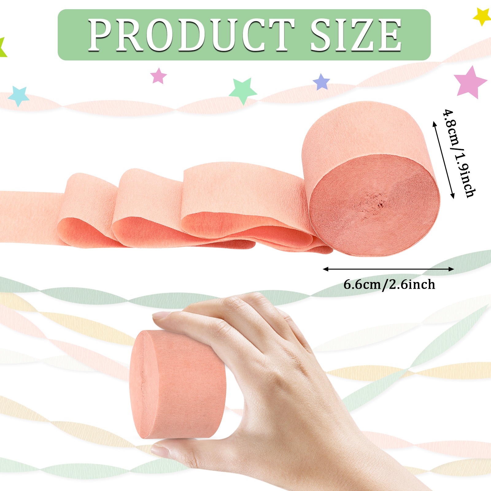 Add infinite creativity and color to every special occasion. Our 6-roll crepe paper streamers set is your ideal decoration choice. Each roll of crepe paper is made of good-quality paper material, which ensures softness and durability, and is suitable for making various handicrafts and decorations such as tassels, garlands, paper towels,swirls and more.