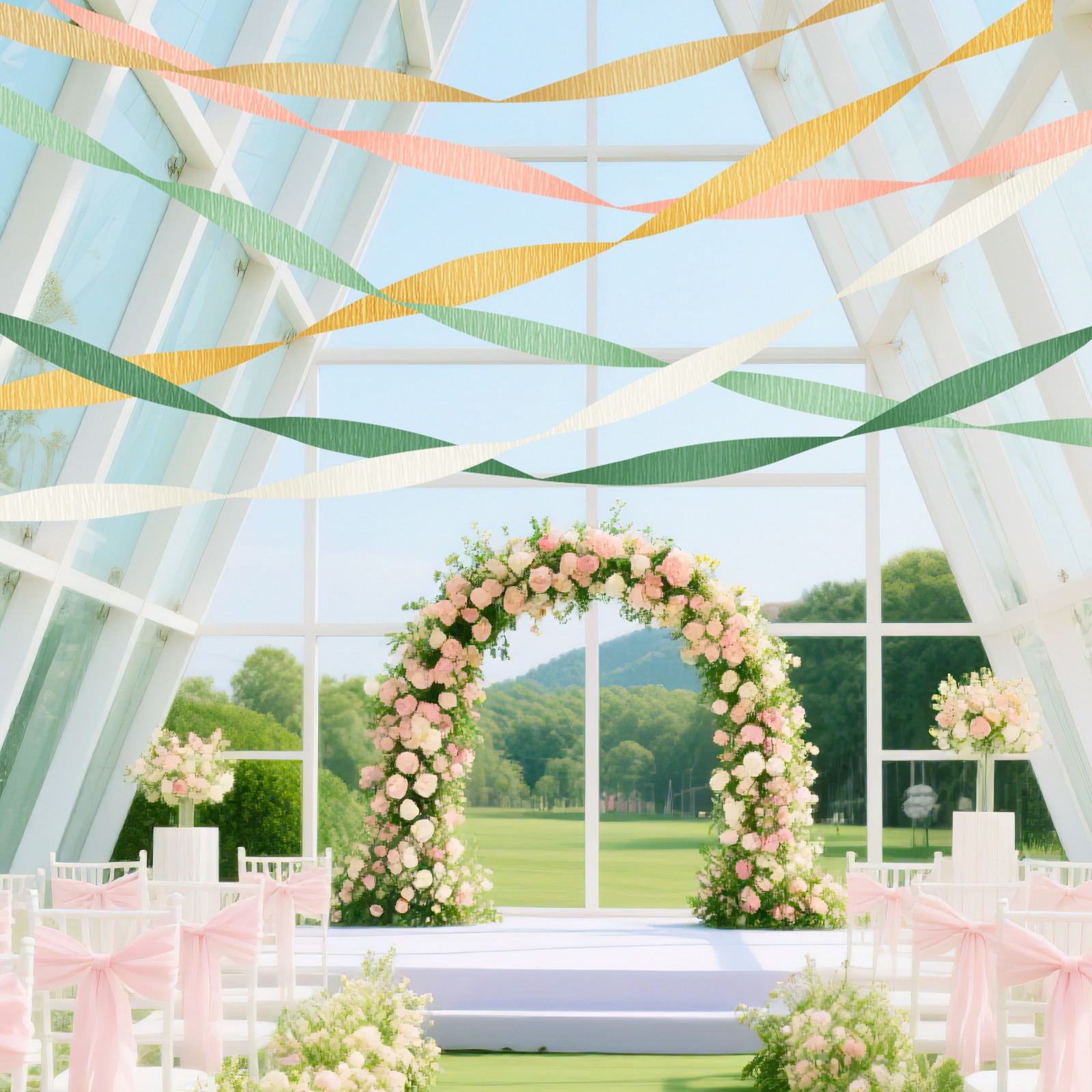 The crepe paper for wedding is designed in 6 exquisite colors: olive green, dark green, gold, peach color, beige and brown, which can be easily integrated into various theme activities