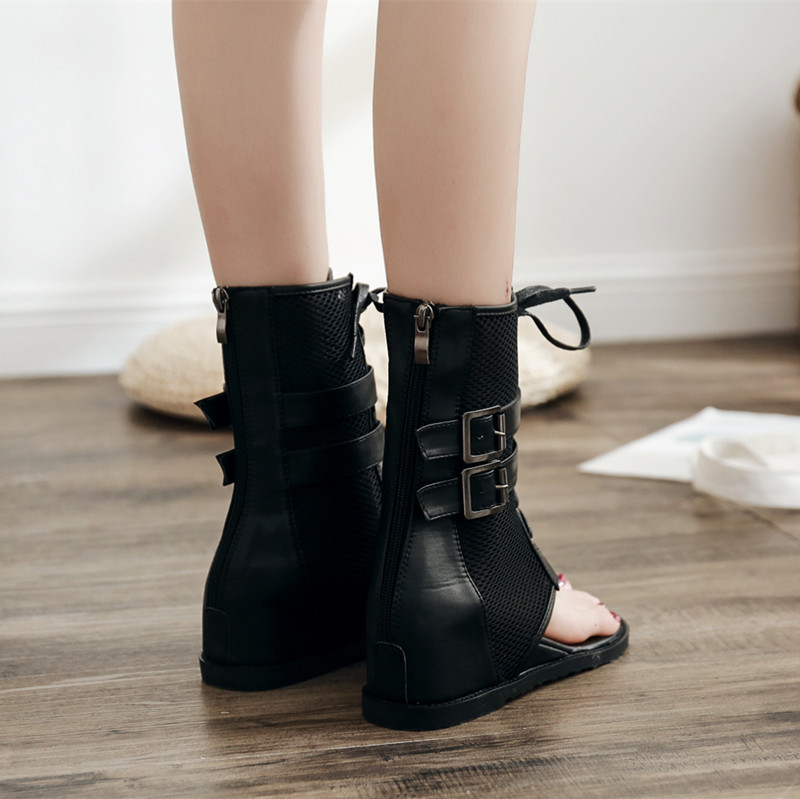Popular elements: cross straps, belt decoration, wedge heel, belt buckle