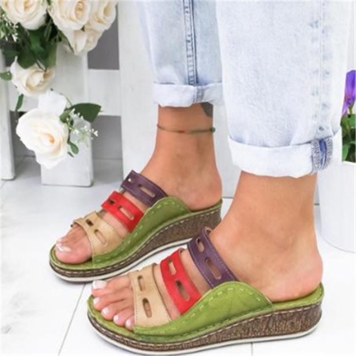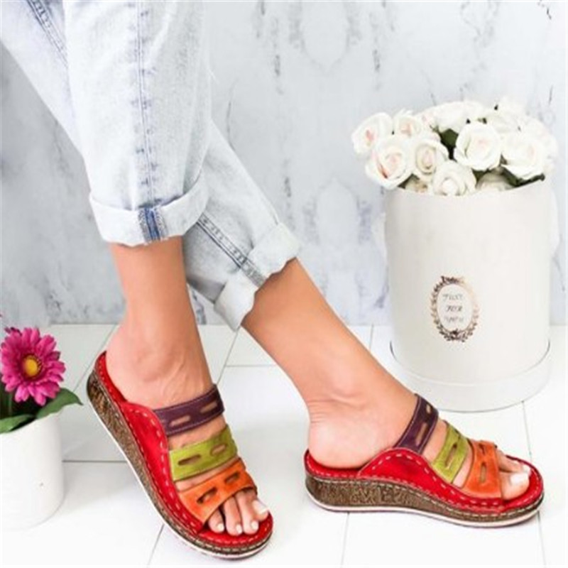 Wedge Heel Color Block Platform Roman Women's Shoes