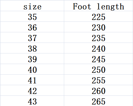 Size: 35, 36, 37, 38, 39, 40, 41, 42, 43