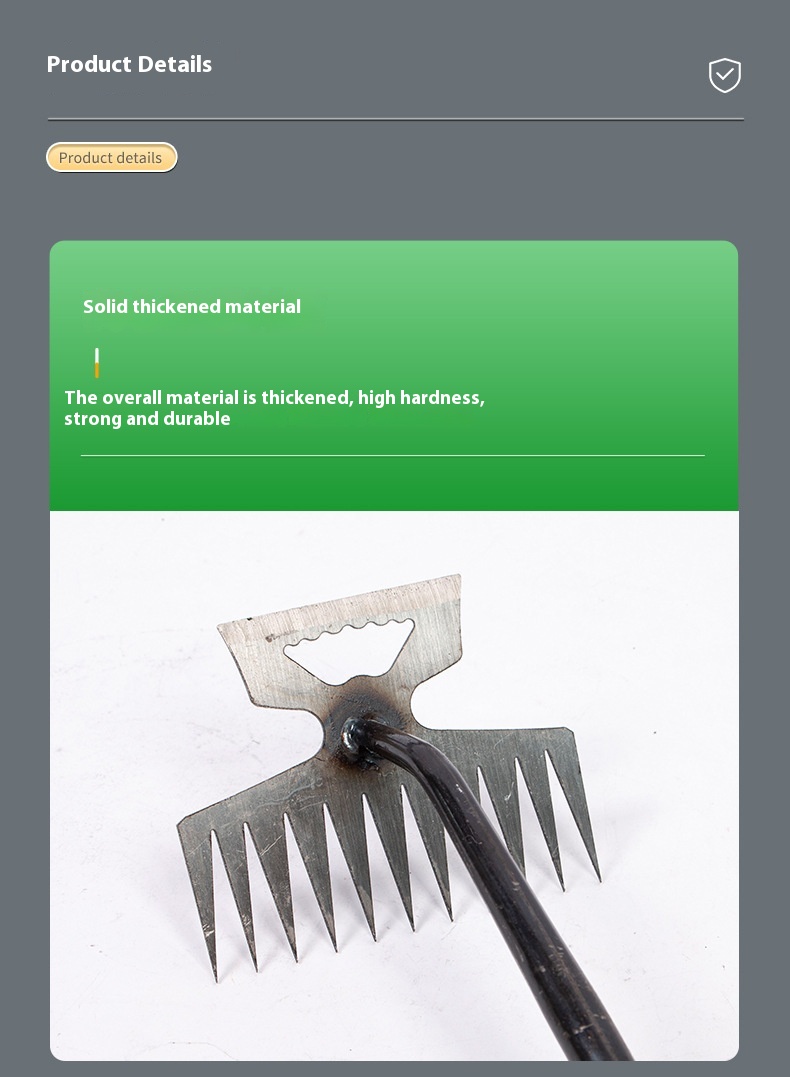 Product information:Pitch: 3cmApplication Field: outdoor garden farmlandRake Head material: carbon steelTooth number: 5