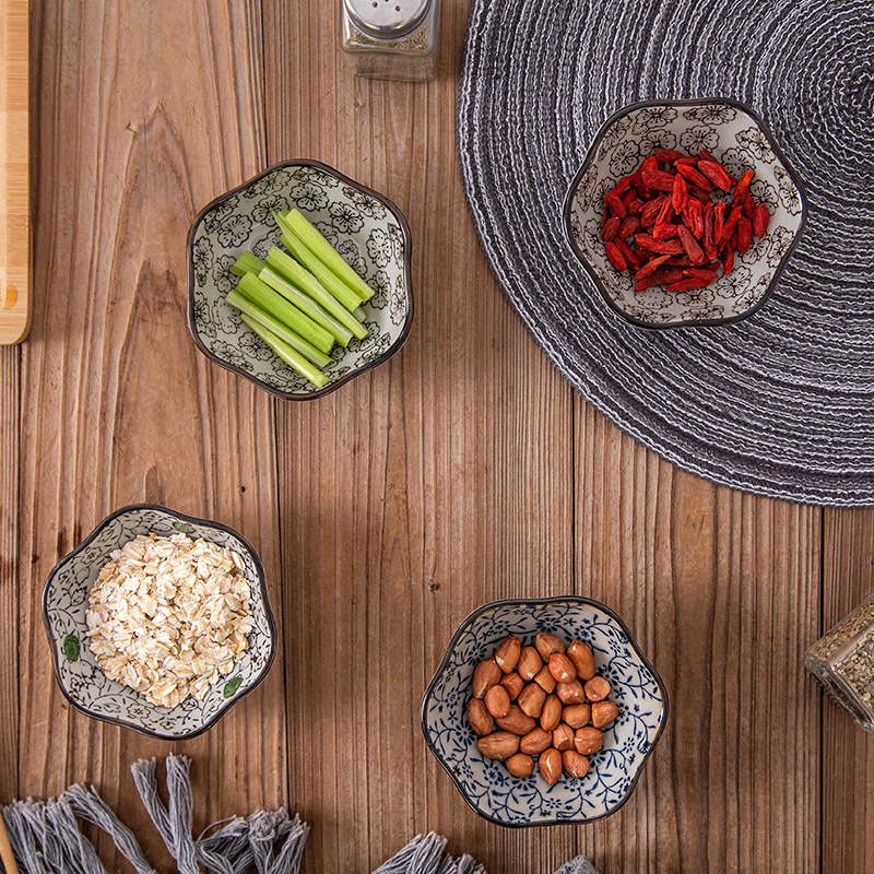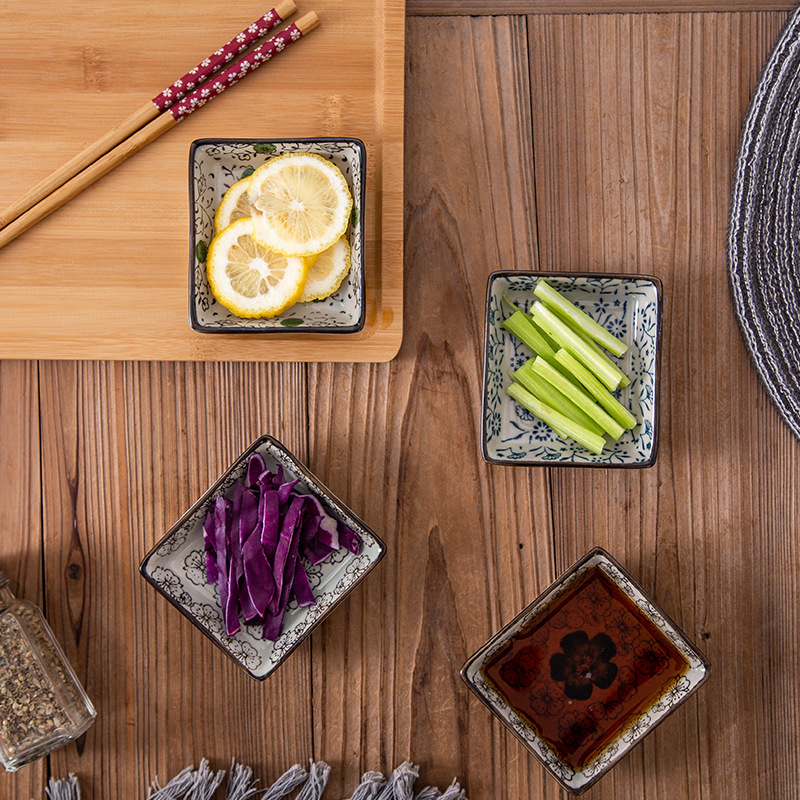 Color: Round Saucer-Blue Rich, Square Saucer-Red Rich, Square Saucer-Blue Rich, Square Saucer-Big Red Flower, Square Saucer-Auspicious Flower, 4-inch Plum Saucer-Red Rich, 4 Inch Plum Saucer-Scarlet Red Flower, 4-inch plum blossom plate-lucky flower, 4 inch double grid plate-blue rich and precious, 4 inch double grid plate-big red flower, 4 inch double grid plate-lucky flower, 6 inch double grid plate-big red flower