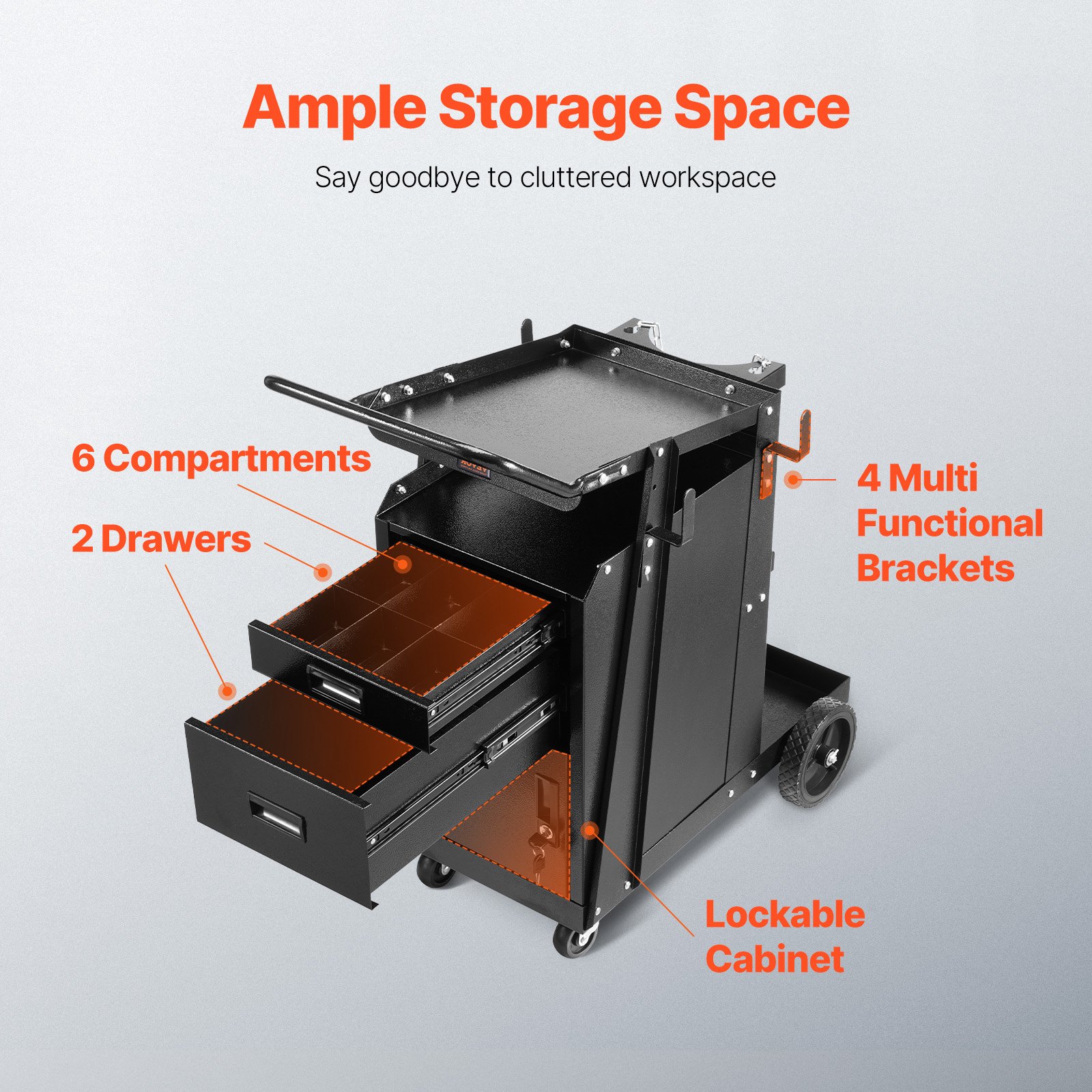 Welding Cart 2 Drawers Heavy Duty Welder Cart Lockable Cabinet 350LBS Loading