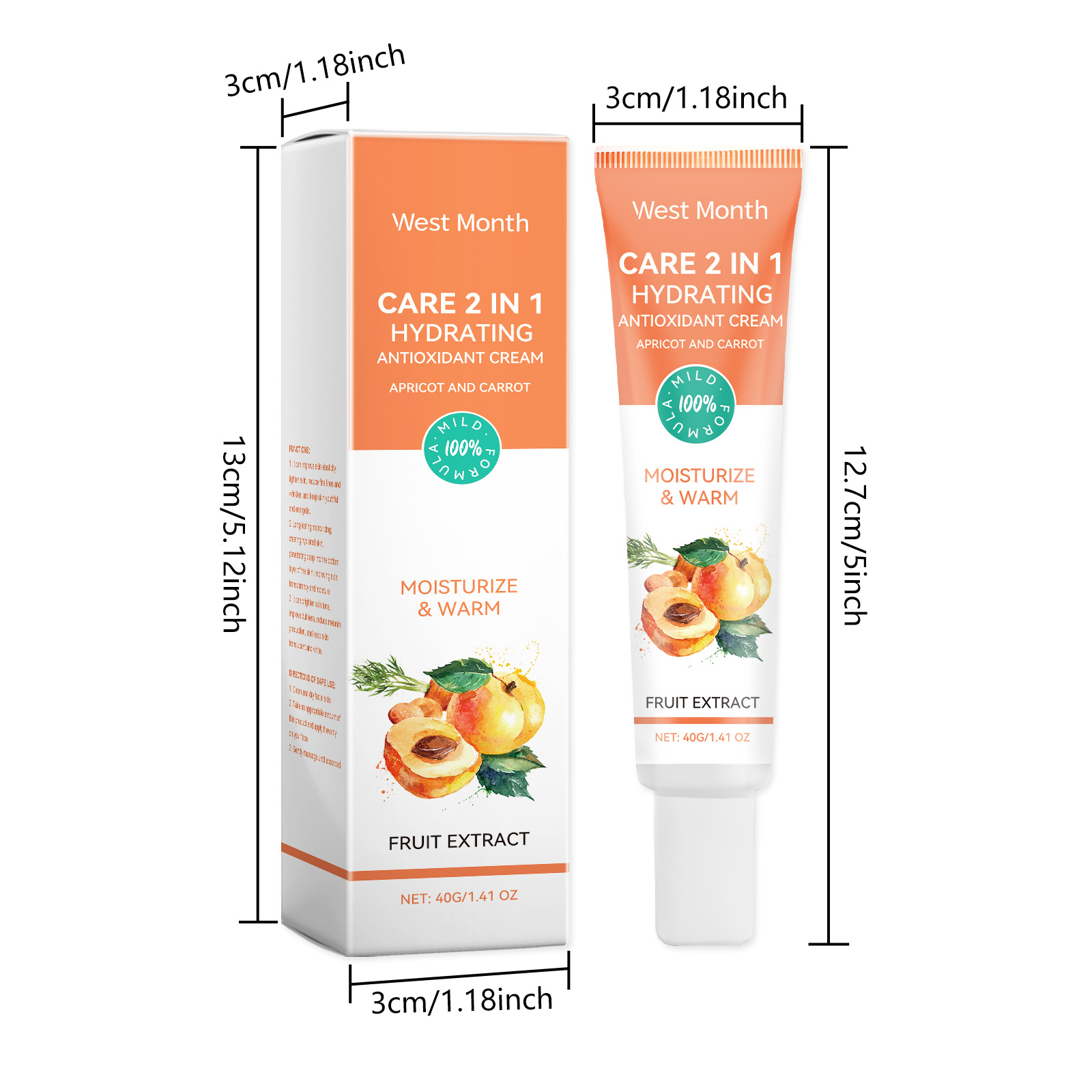 Our 2-in-1 moisturizing cream is carefully formulated with apricot kernel oil, carrot extract and tocopherol. Designed specifically to reduce fine lines and wrinkles and make the skin smoother. The usage method is extremely convenient: Clean and dry the facial skin. Take an appropriate amount of this product and apply it evenly to the face, then gently massage until fully absorbed. It can also promote metabolism, enhance skin firmness, penetrate deep into the skin, effectively reduce fine lines and wrinkles, and reveal smooth and delicate skin.