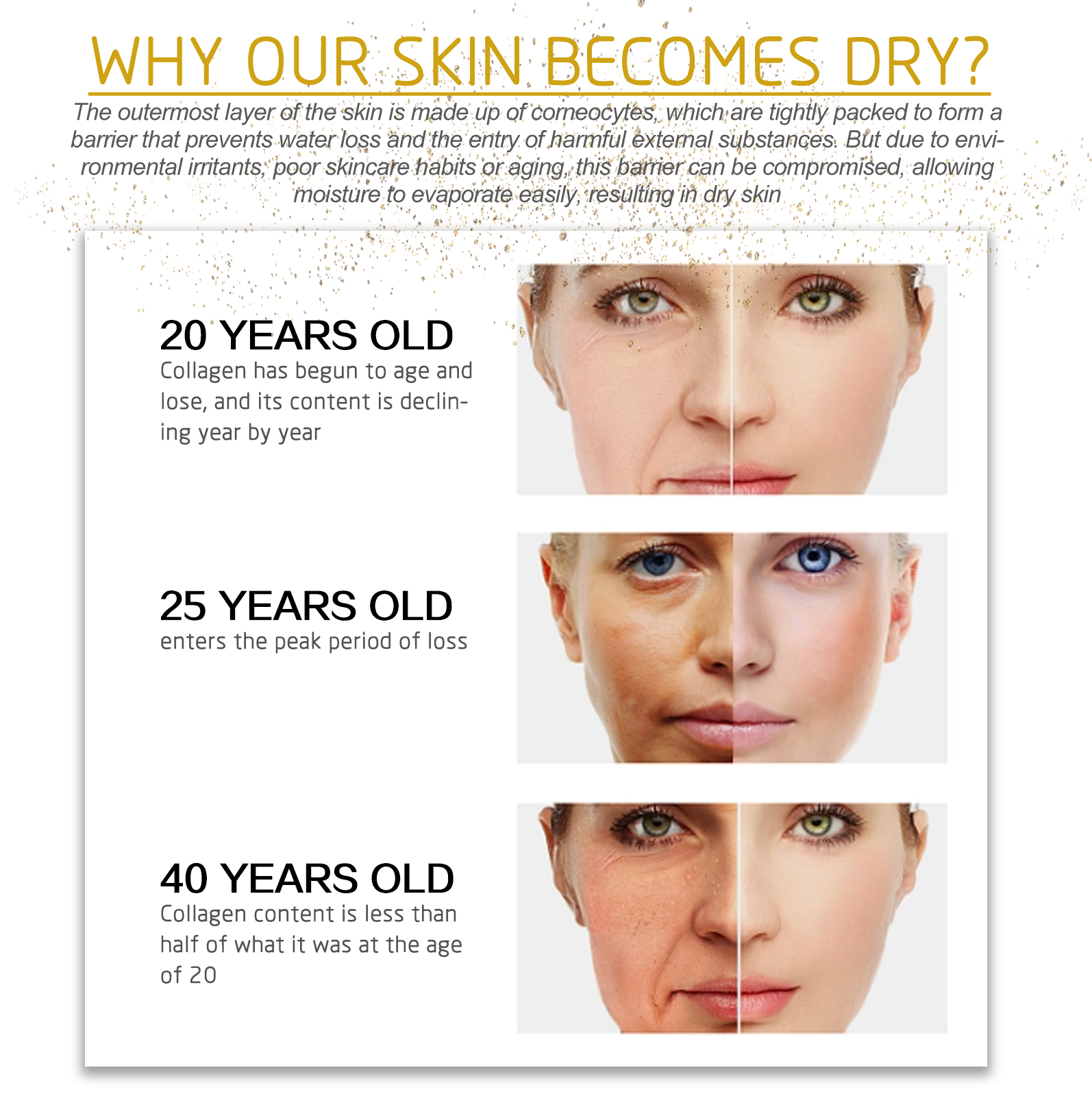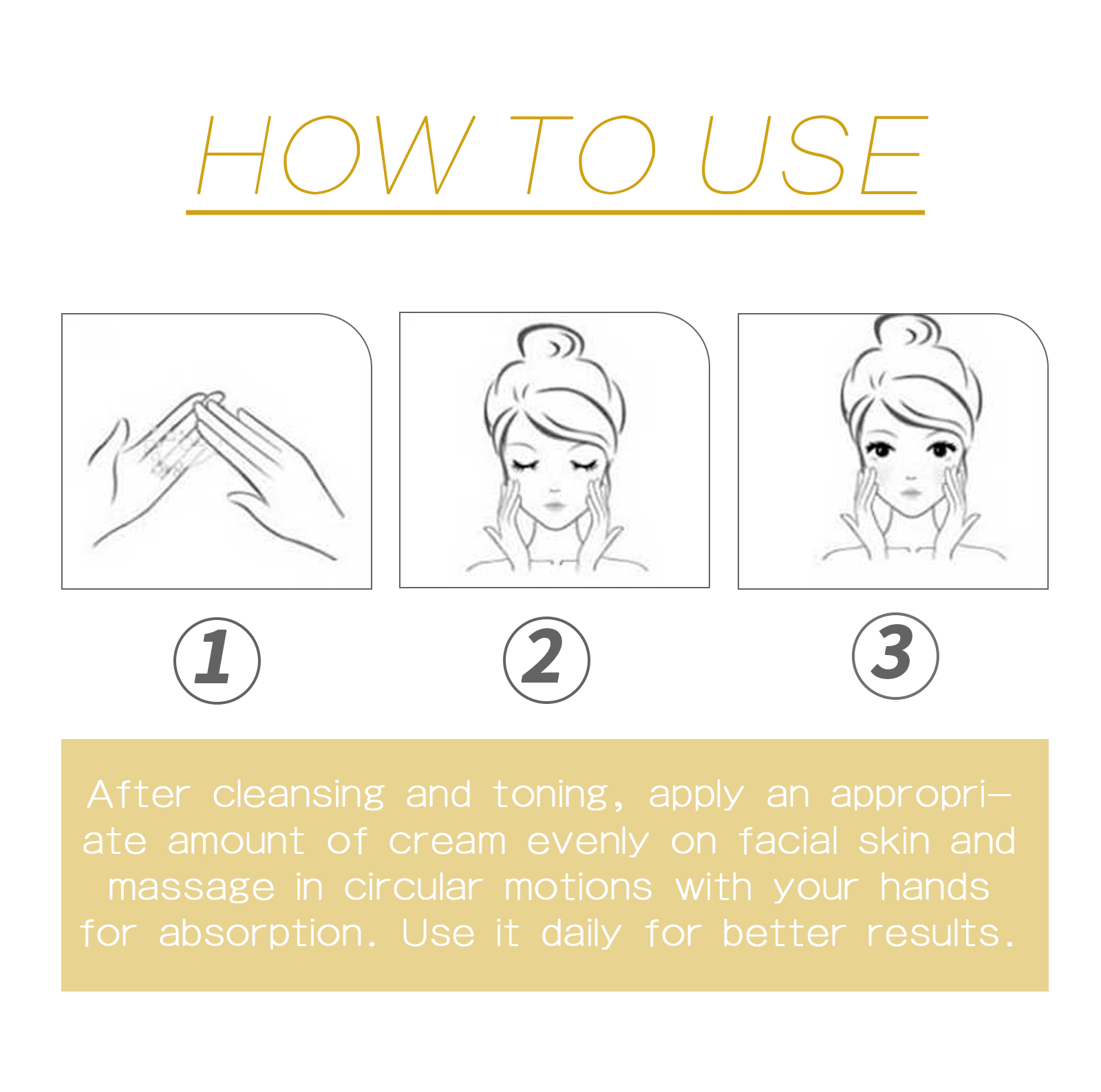 Our 24k collagen cream contains carbomer, hydrolyzed collagen, and sodium hyaluronate. It can effectively brighten, soften and moisturize the face, fade fine lines and spots, tighten and brighten the skin, leaving it moist, clear and shiny. Its use method is very simple: after cleansing, take appropriate amount of cream evenly apply to the face skin, and massage with your hands in circular motions to absorb. Reduces moisture loss and increases skin elasticity, thereby reducing the appearance of fine lines and spots.