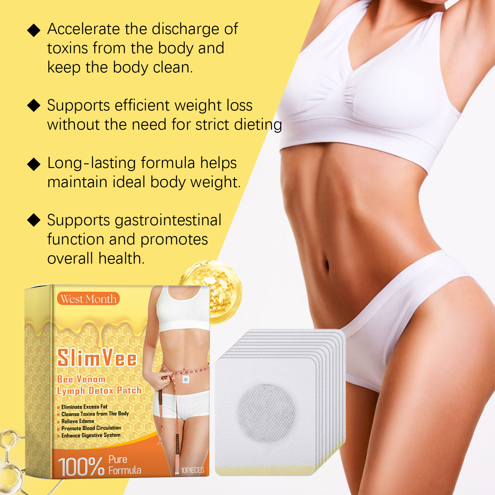 Our bee Venom Body Slimming patch contains bee venom, citrus peel extract, safflower extract. It can be fast and effective, promoting detoxification and weight loss. Improve skin elasticity and firmness, reduce relaxation; Long-lasting weight loss and improved gastrointestinal health. Its application method is simple: 1. Wash and dry the abdomen skin and remove the patch. 2. Place the patch on your belly button, making sure the patch is in close contact with your skin. 3. Wait 6-8 hours before peeling off the patch. Bee Venom Body Slimming Patch accelerates the elimination of toxins from the body and keeps the body clean. Helps create a strong, light figure. Suitable for all kinds of life scenes, convenient and practical. Designed to provide comprehensive shaping solutions for consumers who pursue healthy living.