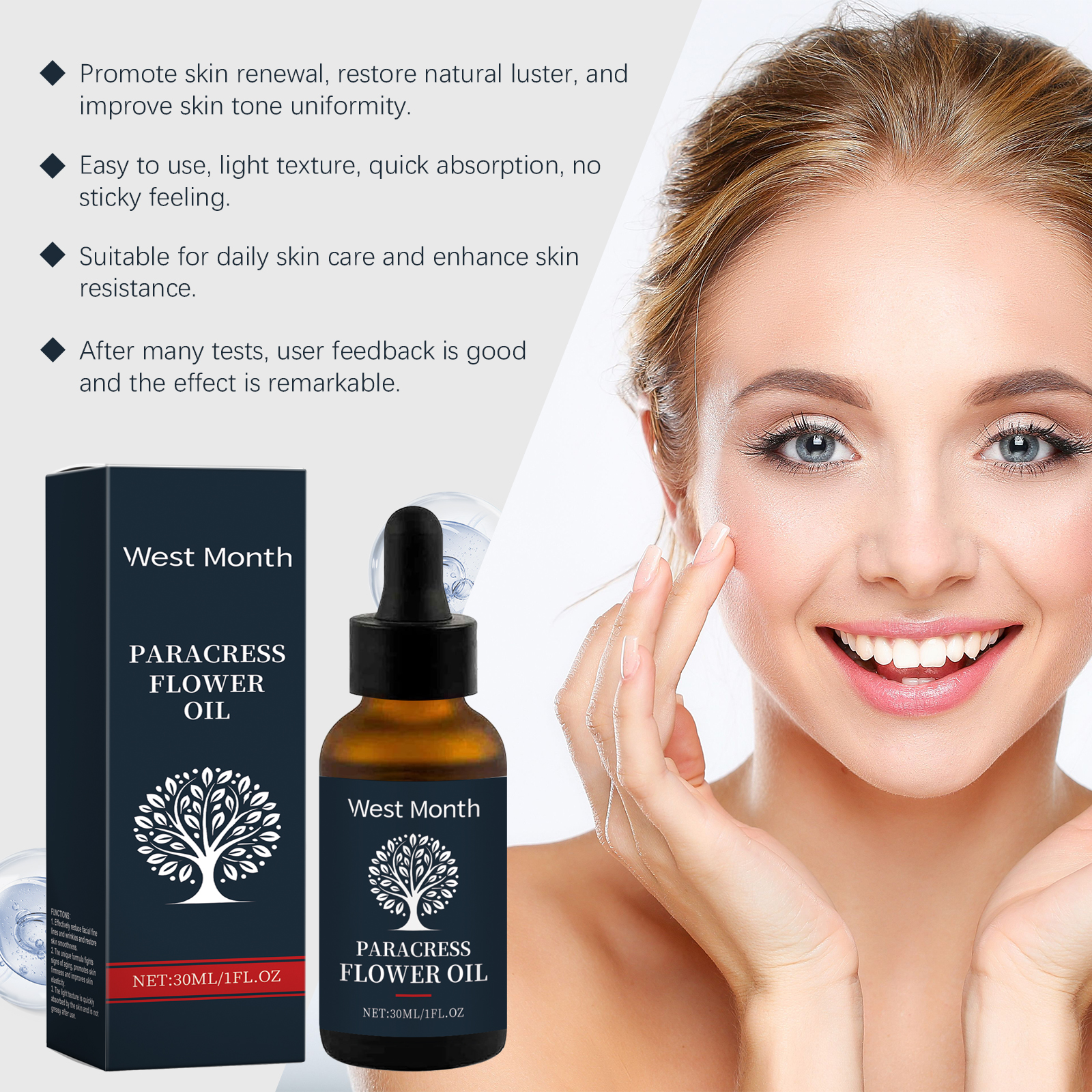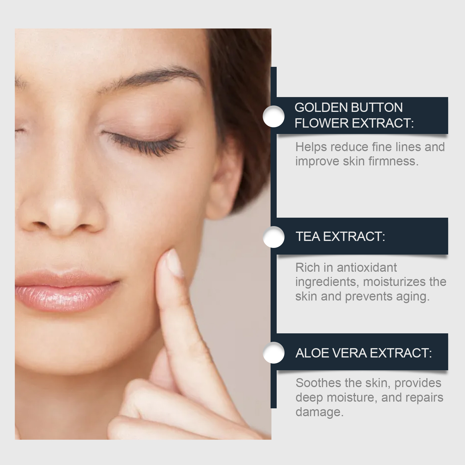 Our facial essence oil contains mineral oil and Jojoba seed oil. It can provide long-lasting moisture for the skin and keep it hydrated. Its usage method is very simple: 1. Clean the skin and keep it dry; 2. Take an appropriate amount of essence and apply it evenly to the face. 3. Gently massage to promote absorption. The essence of Golden Button flower extract effectively reduces fine lines and makes the skin look younger. Collagen helps improve skin firmness and restore plumpness.