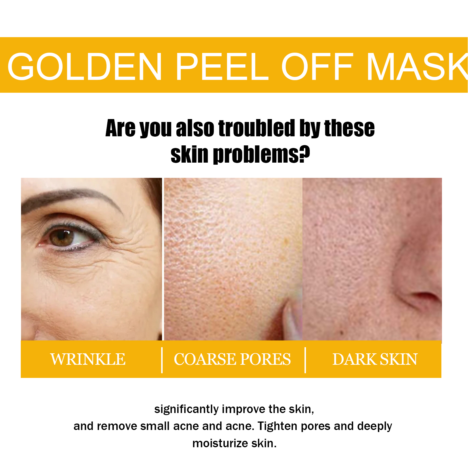 Our Gold Peel mask contains 1, 2-hexanediol, gold, and aloe Vera leaf extract. It can significantly improve the skin and remove small pimples and acne; Tighten pores, effectively remove blackheads and impurities, and deeply clean skin. Its use method is very simple: 1. Clean the face with a hot towel, open the pores, 2. Apply the mask evenly on the face. 3. Wait 10-15 minutes, remove the mask and wash it off with water. Gold Peel Mask improves fine lines, tightens skin, deeply moisturizes skin and improves skin.