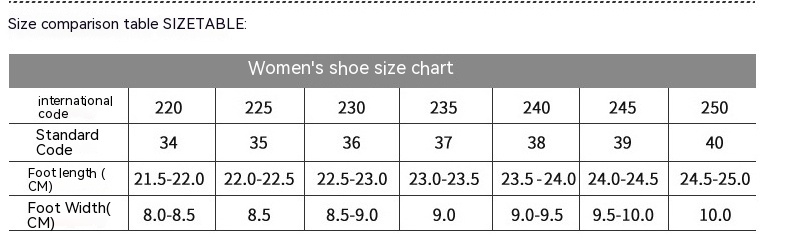 Sizes: 35, 36, 37, 38, 39, 40, 41, 42, 43