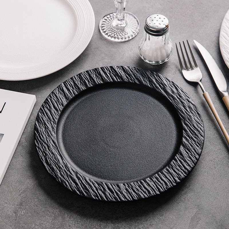 Color: Rock pattern matte white 8.5 inch flat ware, Rock pattern Frosted Black 8.5 inch flat ware, Rock pattern matte white 10.5 inch flat ware, Rock pattern Frosted Black 10.5 inch plate