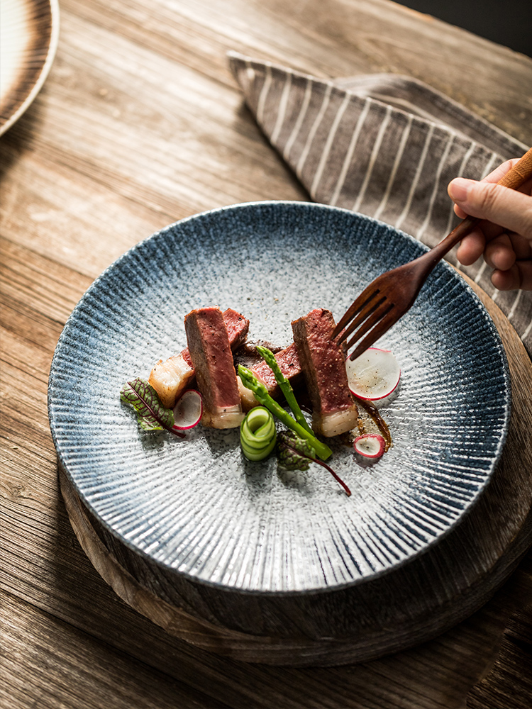 Color classification: 8-inch stripe shallow plate-Black Pearl, 8-inch stripe shallow plate-Lunar December, 8-inch stripe shallow plate-sesame gold, 8-inch stripe shallow plate-sapphire blue, 10-inch stripe shallow plate-Black Pearl, 10-inch stripes shallow plate-Lunar December, 10-inch stripes shallow plate-sesame gold, 10-inch stripes shallow plate-sapphire blue