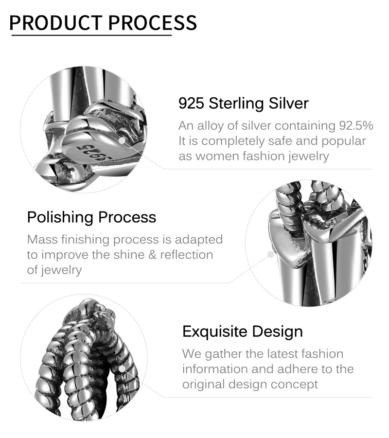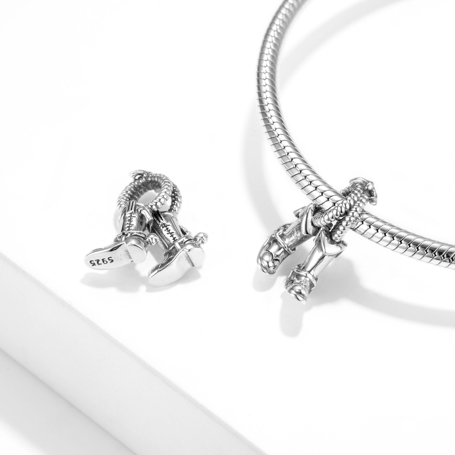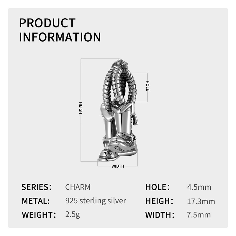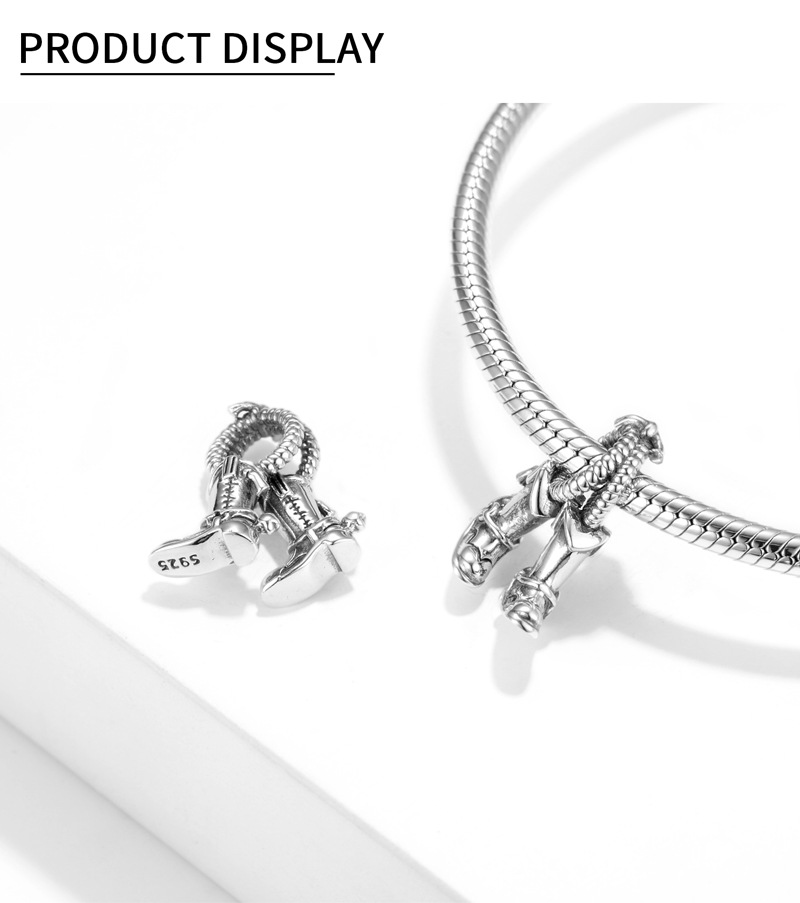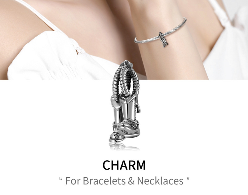 Western Denim Shoes Beads Gothic 925 Sterling Silver Plain Beads Personalized Bracelet Diy Accessories