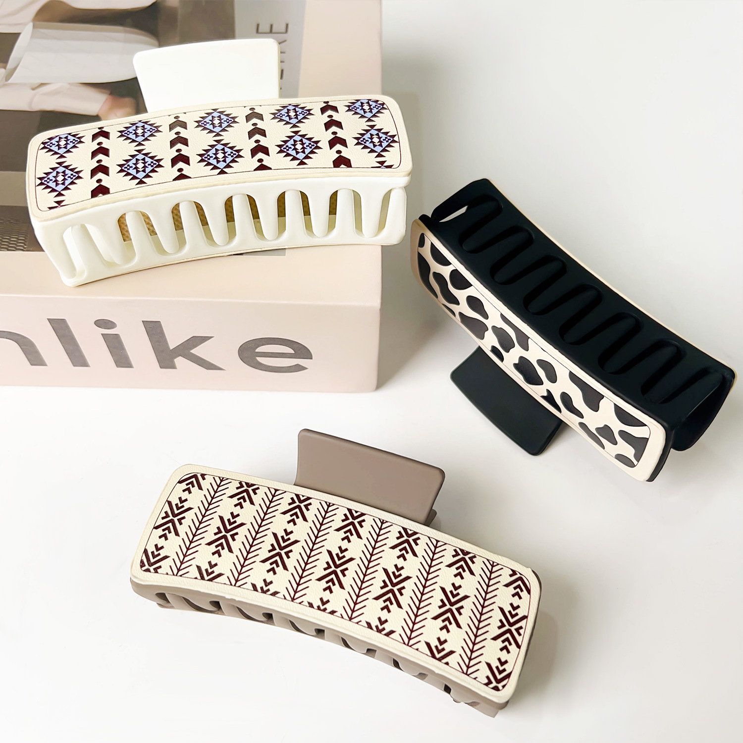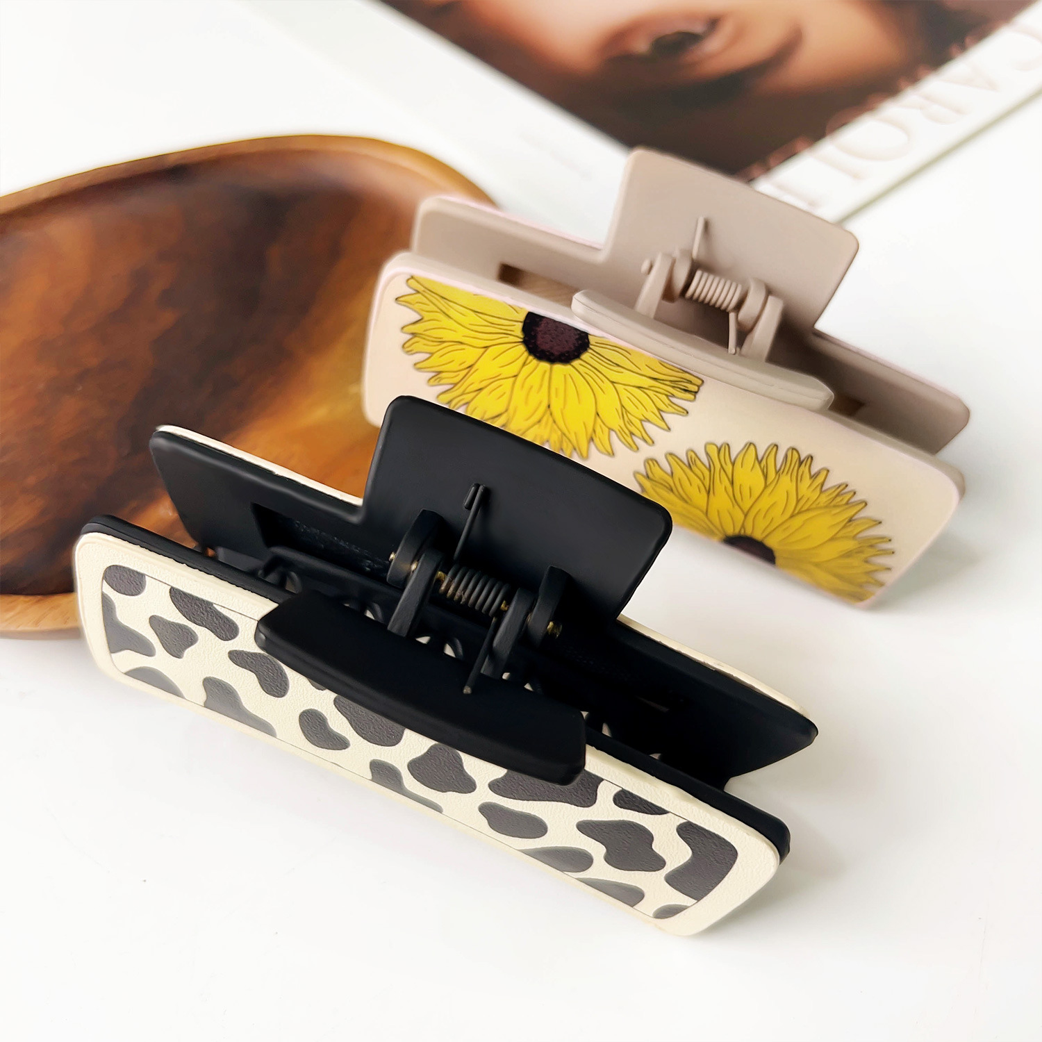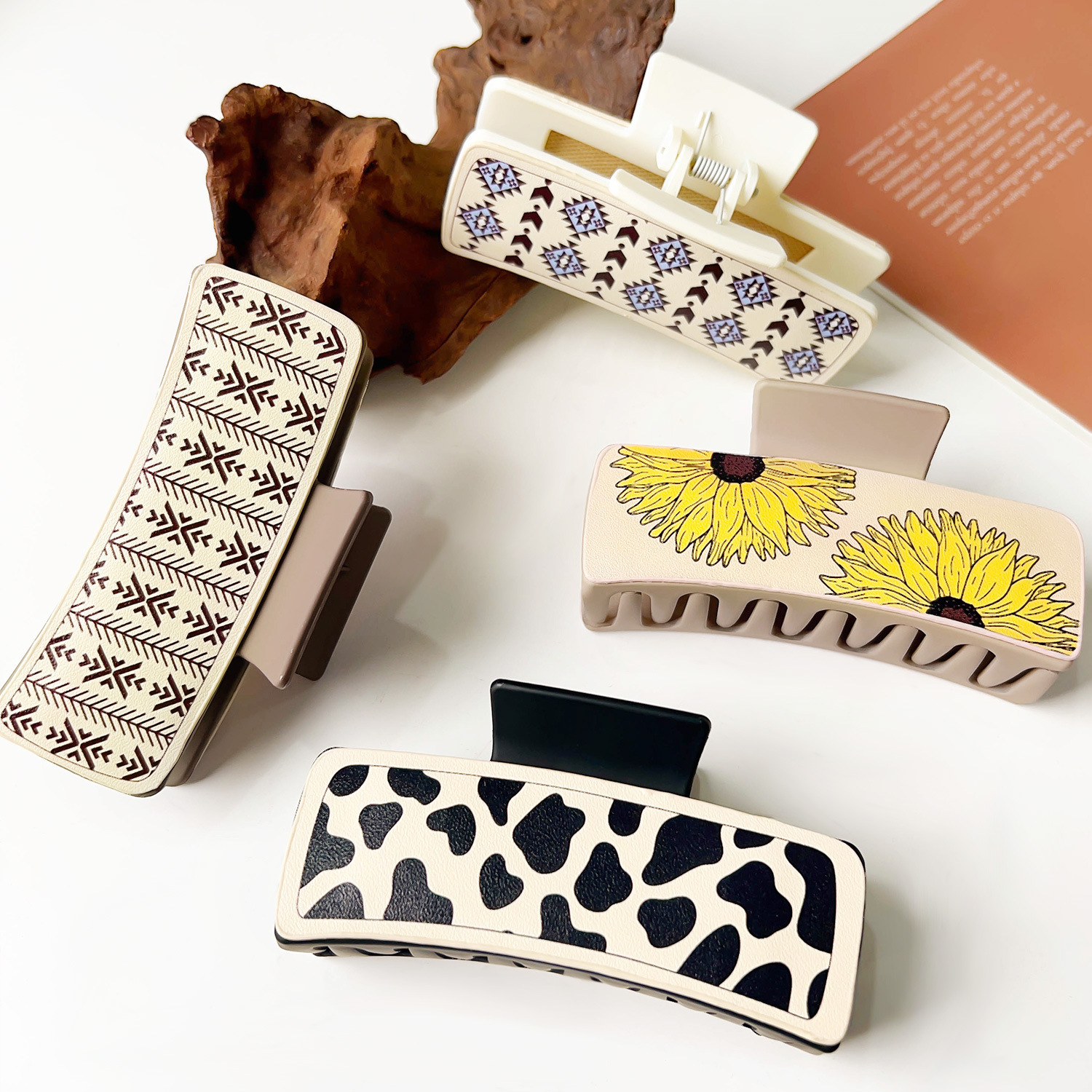 Style: leather printed barrettes