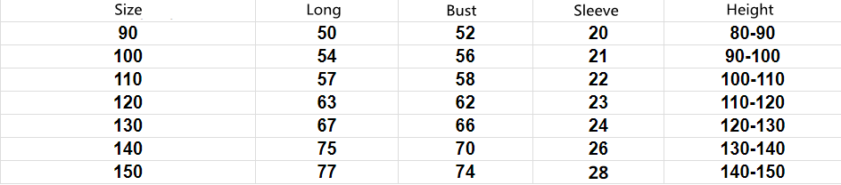 Size: 90/100/110/120/130/140/150