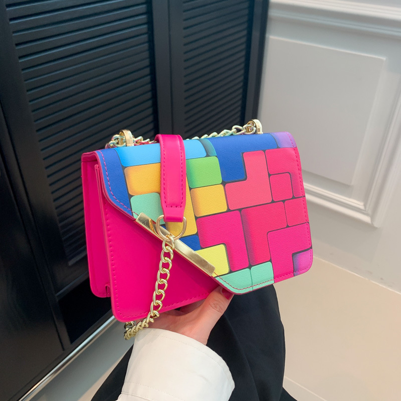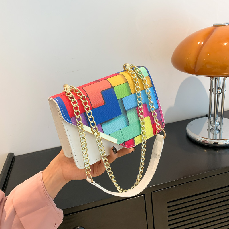 Western Style Chain Women's Fashion Color Contrast Crossbody