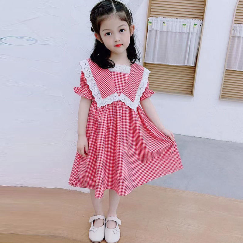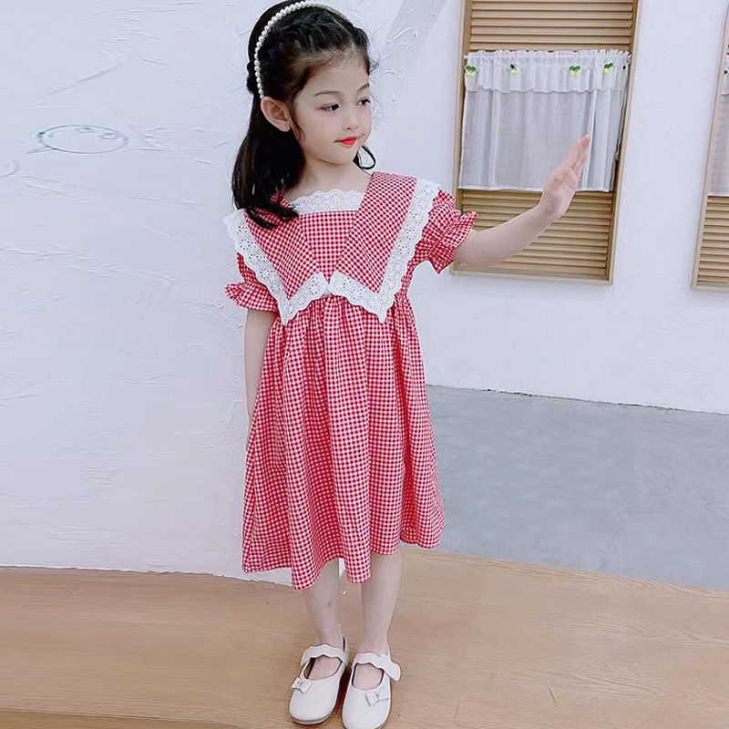 Features: checkered, hollow, bow, doll collar, pure cotton