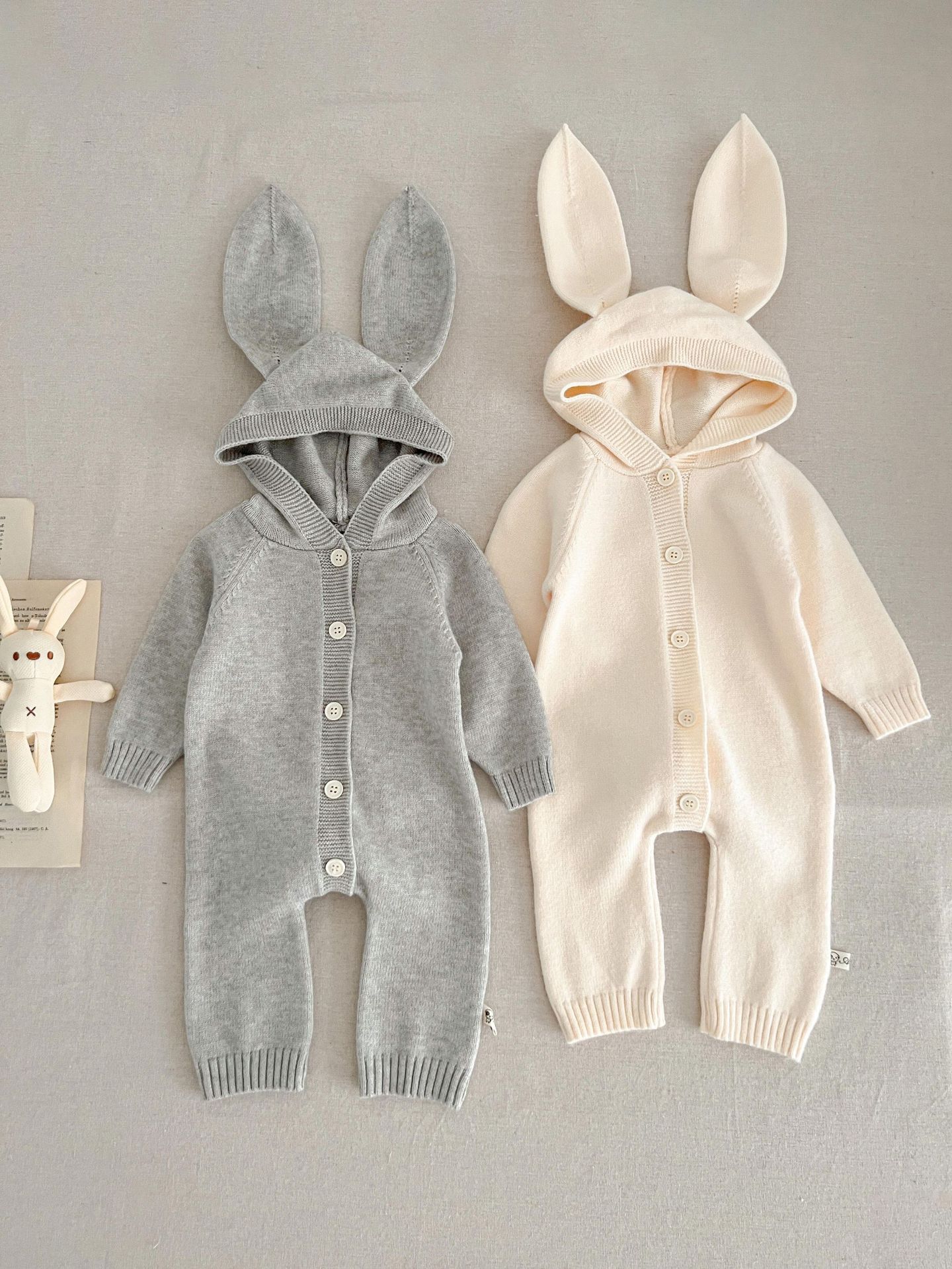Western Style Cute Bear Ears Rabbit Ears Hooded Romper