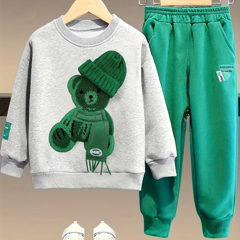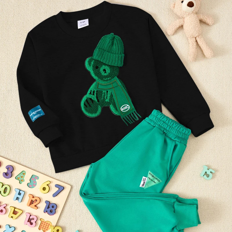 Color: Three-dimensional hat gray bear coat green pants (suit), three-dimensional hat green bear top black pants (suit), three-dimensional hat black bear coat green pants (suit), three-dimensional hat gray bear top (top only), three-dimensional hat green bear top (top only), three-dimensional hat black bear top (top only), black pants (bottom only), green pants (bottom only), three-dimensional drawstring gray teddy bear coat green pants (suit), three-dimensional drawstring green teddy bear top black trousers (suit), three-dimensional drawstring black teddy bear coat green trousers (suit), three-dimensional drawstring gray teddy bear top (top only), three-dimensional drawstring green teddy bear top (top only), three-dimensional drawstring black teddy bear top (top only), three-dimensional bear with scarf gray coat green pants (suit), three-dimensional bear with scarf black coat green pants (suit), three-dimensional bear with scarf gray top (top only), three-dimensional bear with scarf black top (top only), gray K hat top gray trousers (suit), royal blue K hat top gray trousers (suit), gray K hat top (top only), royal blue K hat top (top only), gray K hat pants (bottom only), dinosaur Green-suit, dinosaur purple-suit
