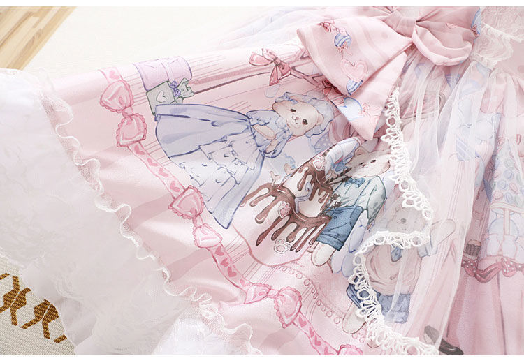 Features: bow, ruffle, gauze