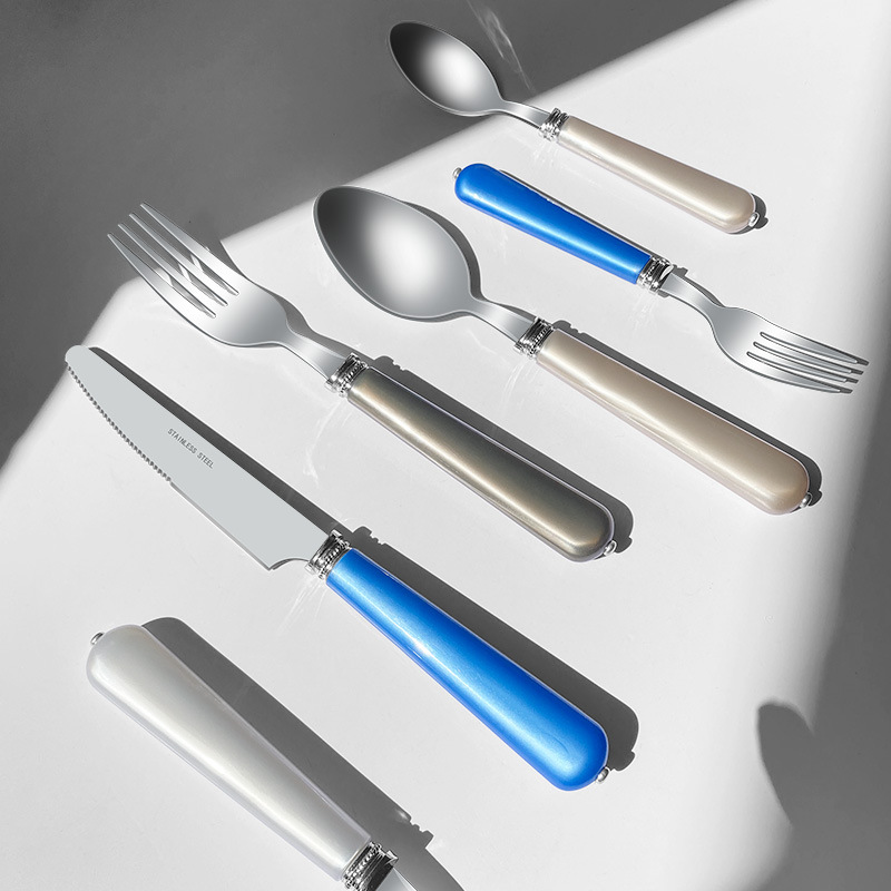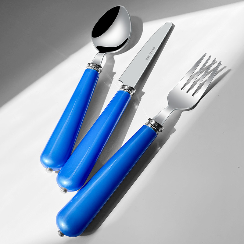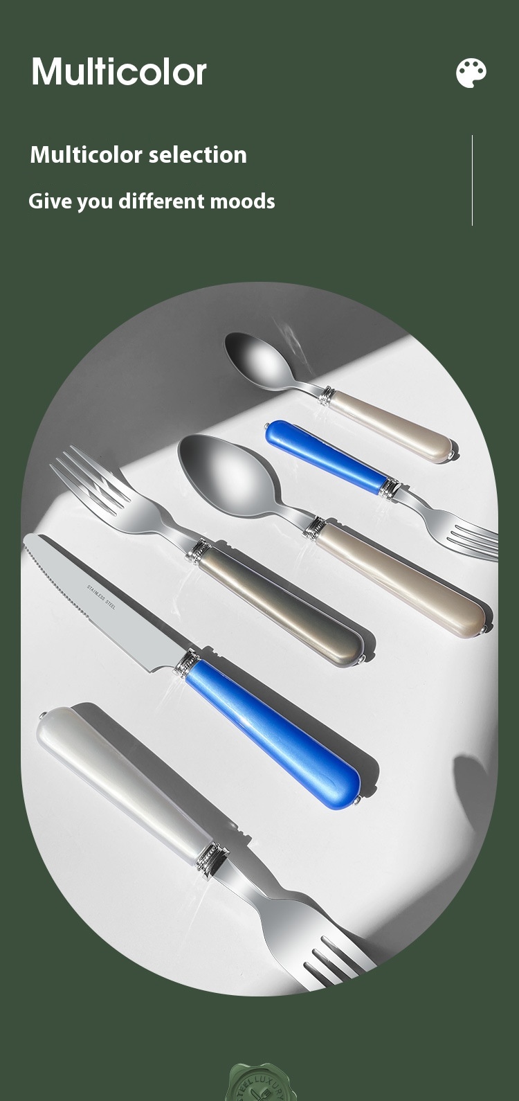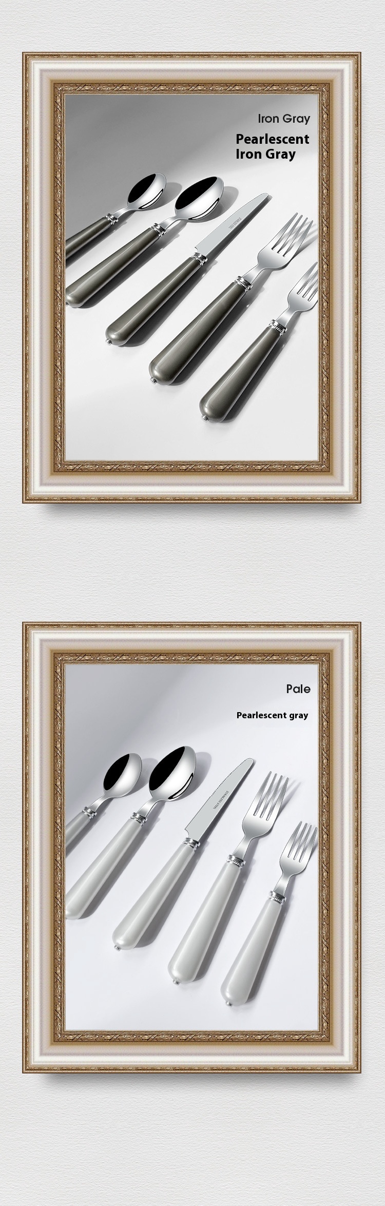 Color: iron gray main knife 38, iron gray fork 38, iron gray main spoon 38, iron gray auxiliary fork 38, iron gray auxiliary spoon 38, milk coffee main knife 12, milk coffee fork 12, milk coffee main spoon 12, milk coffee fork 12, milk coffee fork spoon 12, Gray White Main table knife 11, gray white table fork 11, gray white main spoon 11, gray white table fork 11, gray white side spoon 11, sapphire blue main table knife 10, sapphire blue table fork 10, sapphire Blue main spoon 10, sapphire blue auxiliary fork 10, sapphire blue auxiliary spoon 10