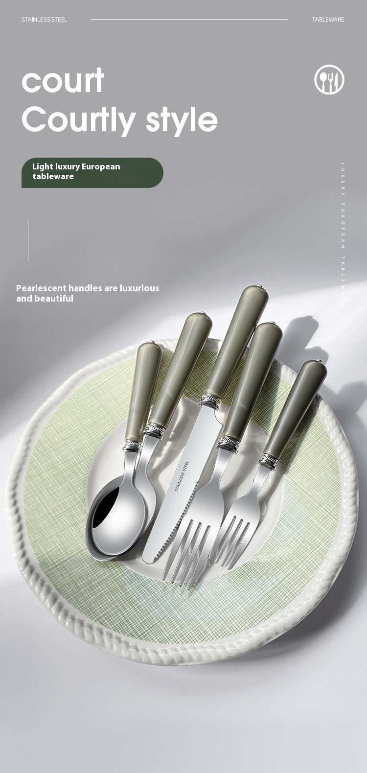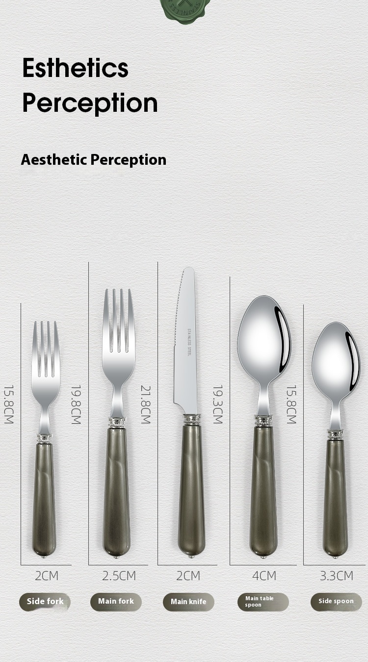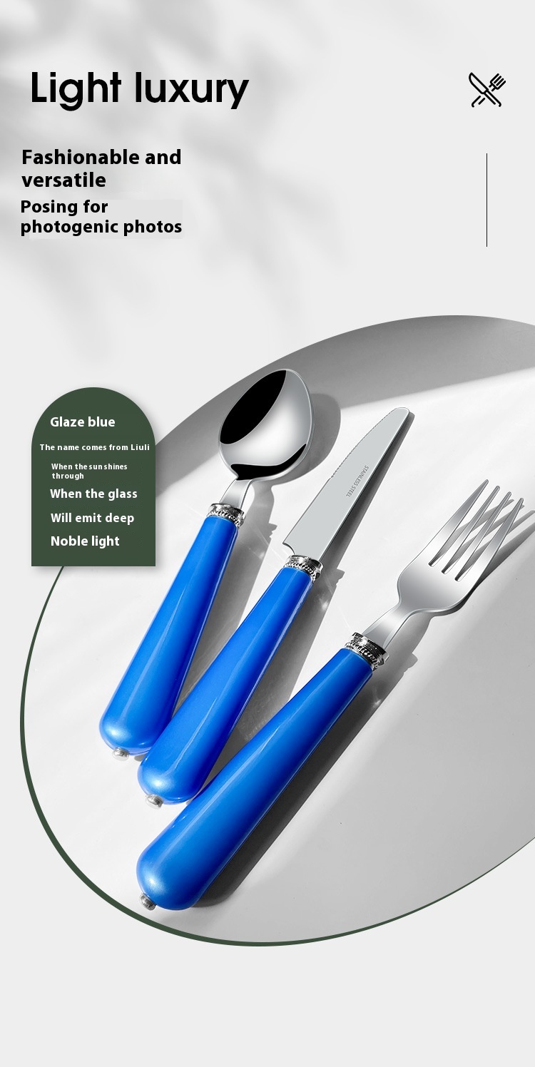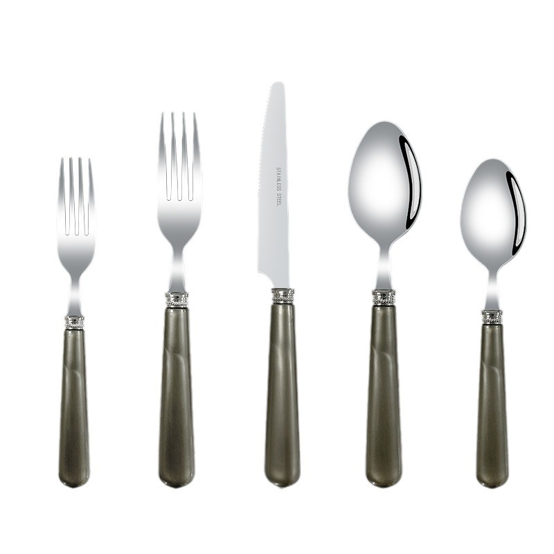 Color: iron gray main knife 38, iron gray fork 38, iron gray main spoon 38, iron gray auxiliary fork 38, iron gray auxiliary spoon 38, milk coffee main knife 12, milk coffee fork 12, milk coffee main spoon 12, milk coffee fork 12, milk coffee fork spoon 12, Gray White Main table knife 11, gray white table fork 11, gray white main spoon 11, gray white table fork 11, gray white side spoon 11, sapphire blue main table knife 10, sapphire blue table fork 10, sapphire Blue main spoon 10, sapphire blue auxiliary fork 10, sapphire blue auxiliary spoon 10
