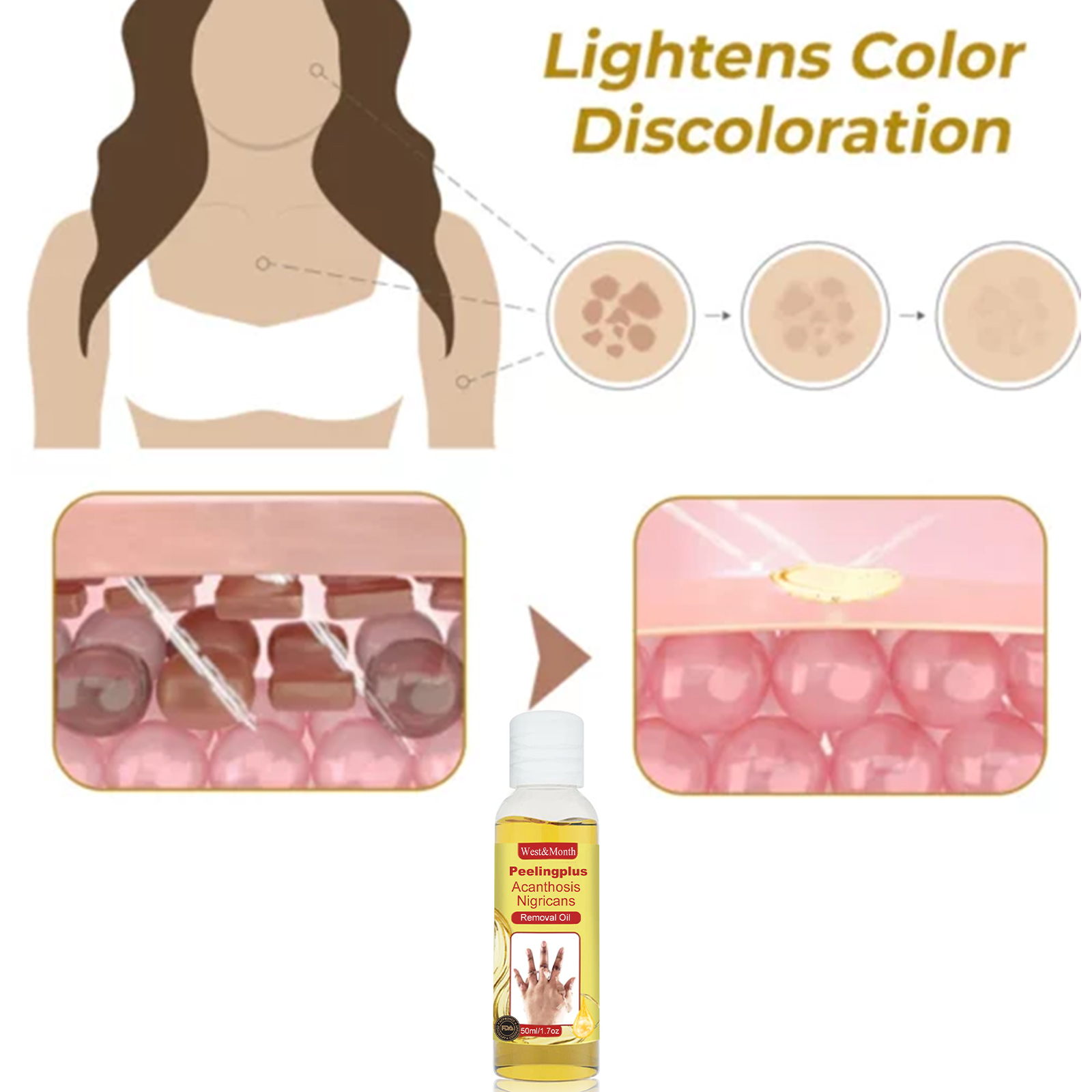 Our Acanthosis Nigricans Removal Oil contains nicotinamide, allantoin and Jojoba seed oil. It can help dull skin gradually restore white, lighten dull skin, reduce skin dryness and melanin precipitation, promote the production of new cells, make the skin look more healthy and uniform. The method of use is very simple: dry after bathing, apply appropriate amount of this product evenly on the skin, wait for 3-30 minutes to let the dead skin naturally fall off, and finally wash the skin with clean water. Gently remove aging keratin, brightening and moisturizing skin, can effectively improve the condition of armpit and joint black.