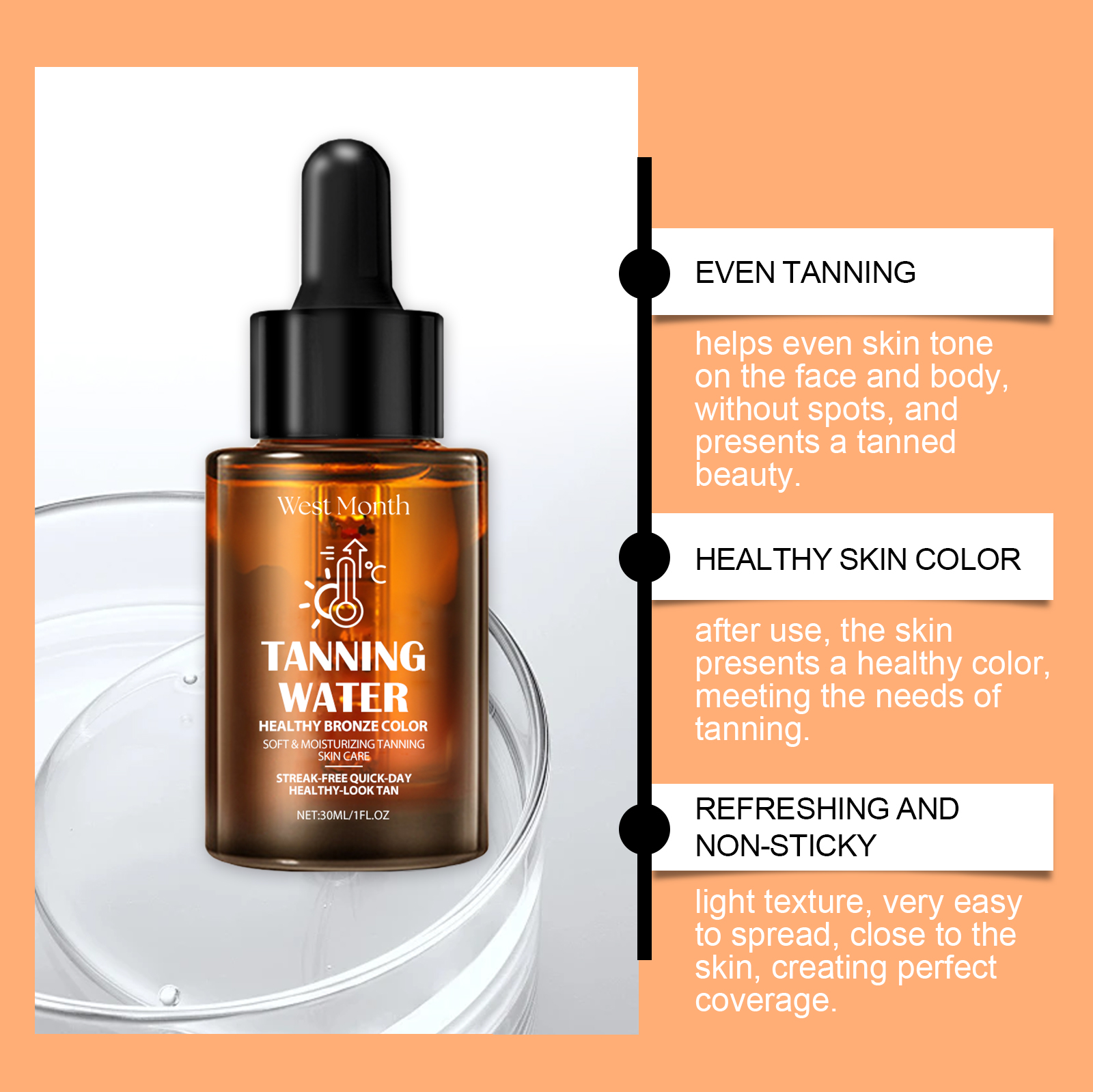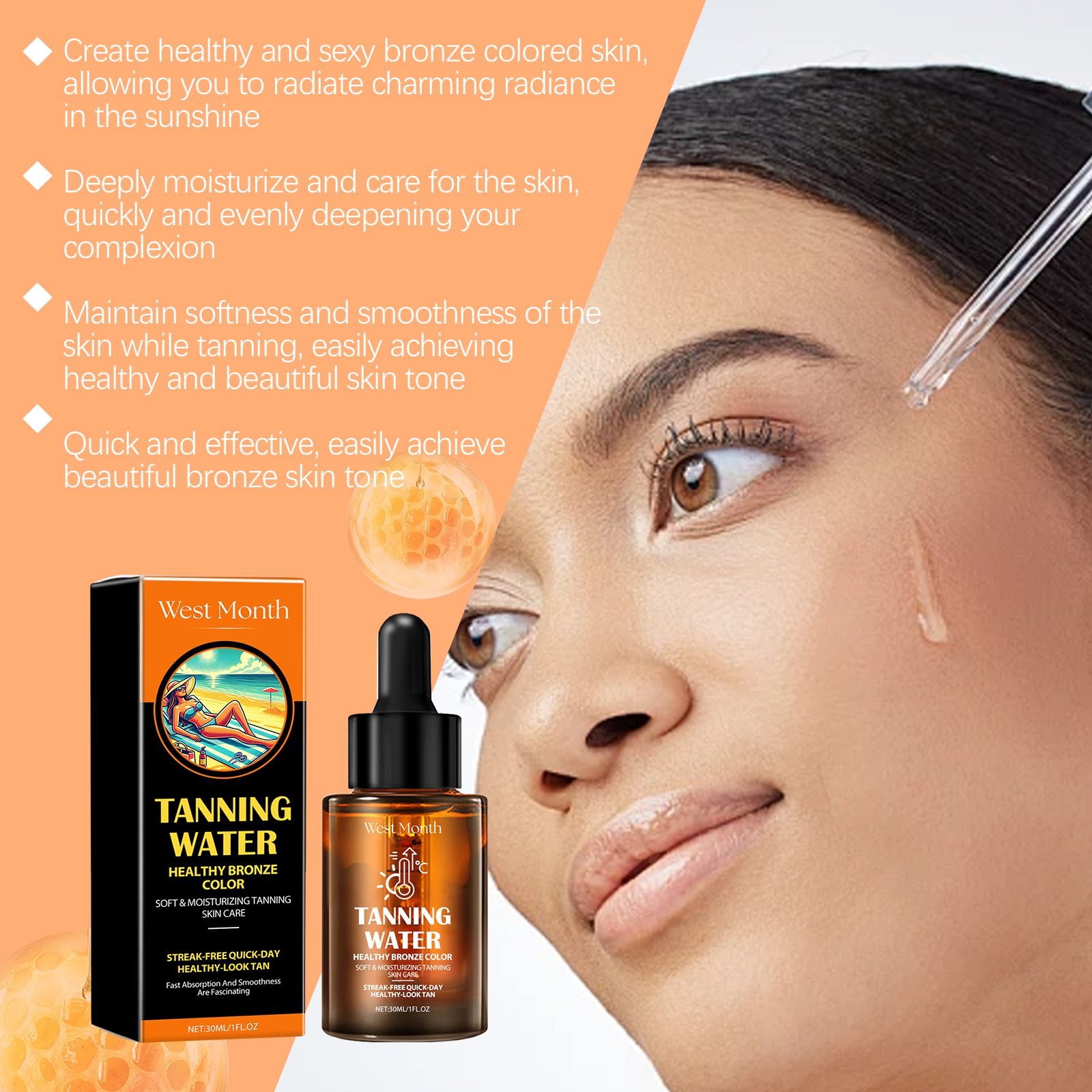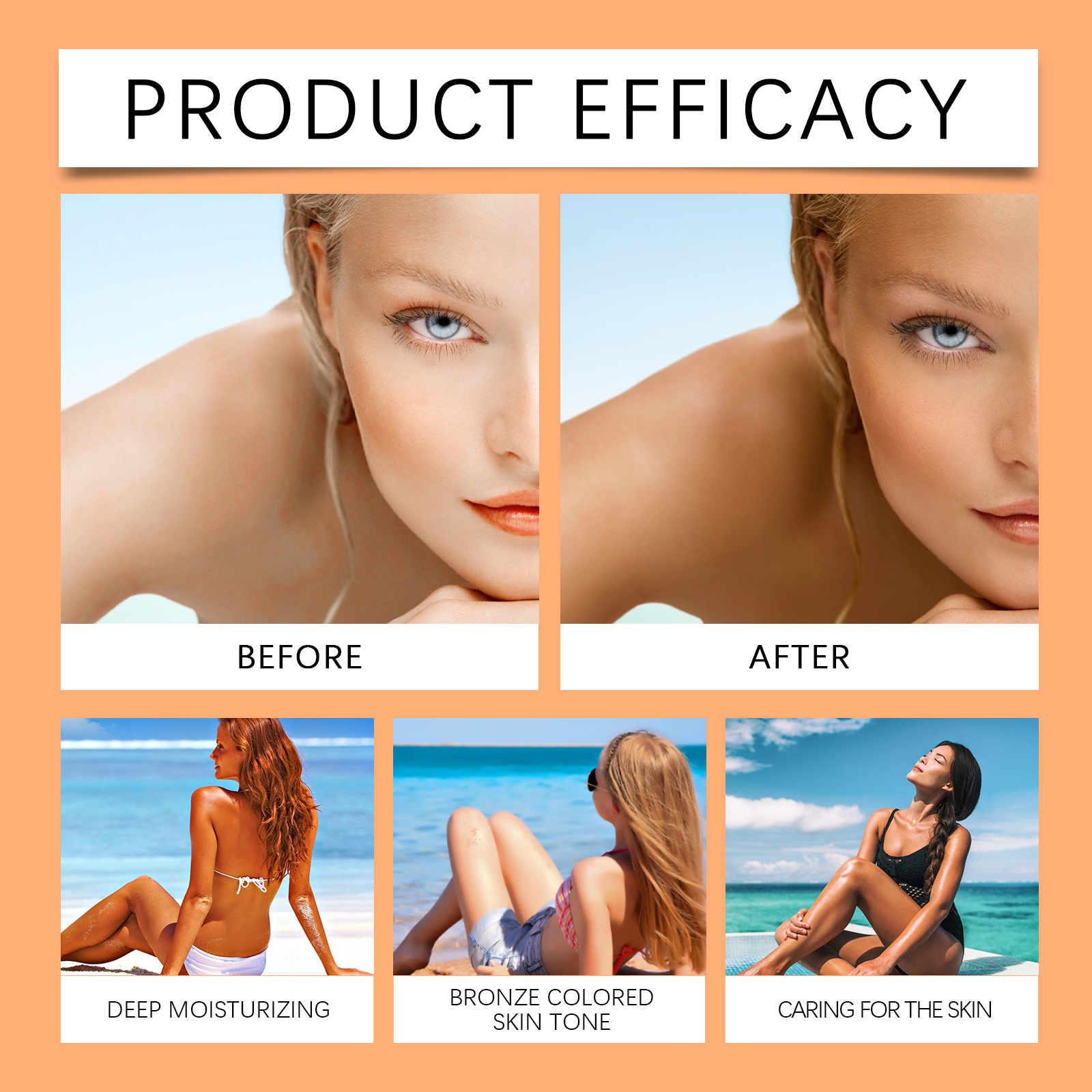 Our tanning essence is carefully formulated with glycerin and hydroxyethyl cellulose. Specially designed for easily adjusting the shade, creating a personal skin tone style, even and healthy wheat-colored skin, making people appear more energetic, confident and fashionable in social occasions. The usage method is extremely convenient: Clean the skin and keep it dry. Take an appropriate amount of this product and apply it evenly to the face and body. Wait for it to be fully absorbed and dry. And it has a wide range of applications, suitable for people of all skin colors, allowing you to easily achieve your ideal skin tone.