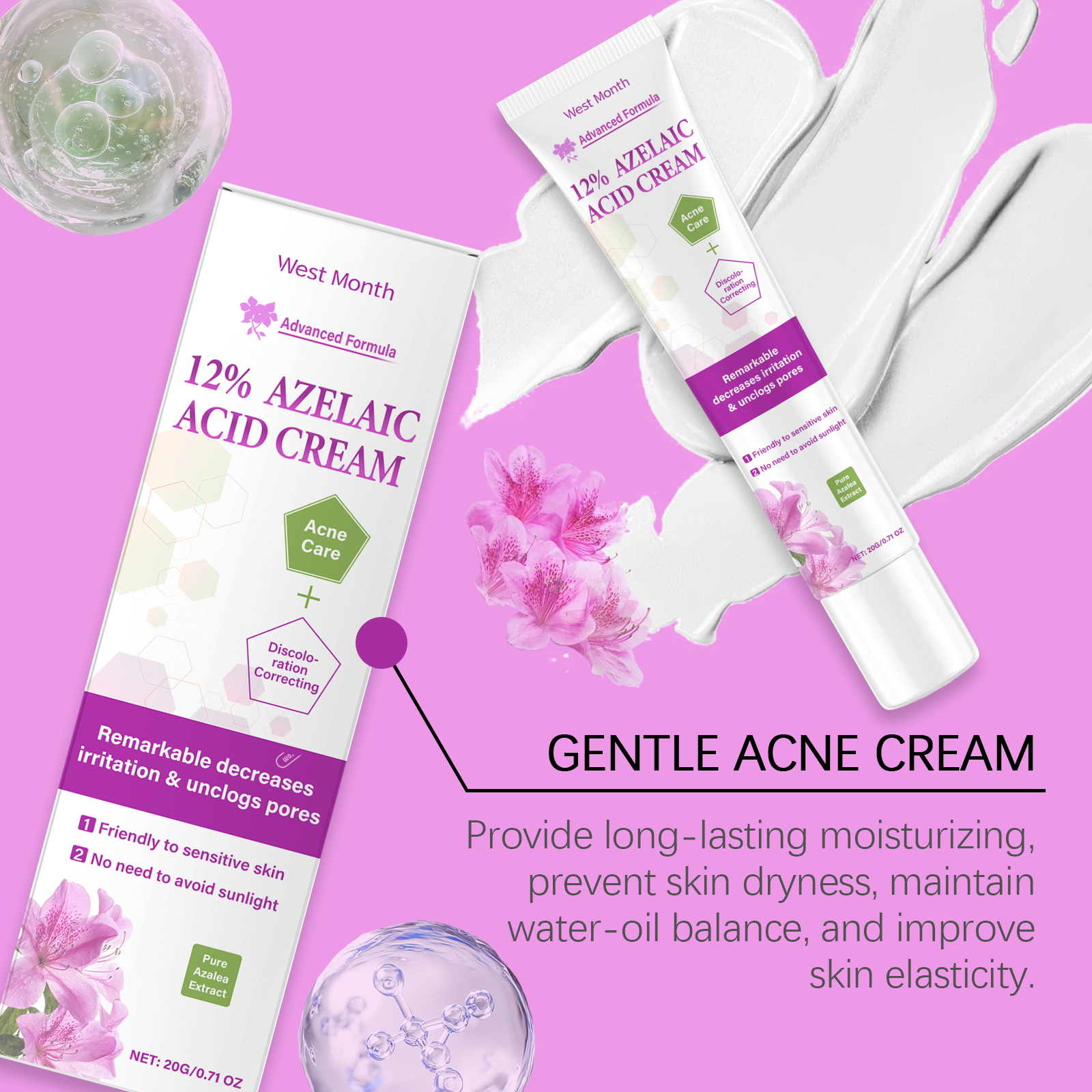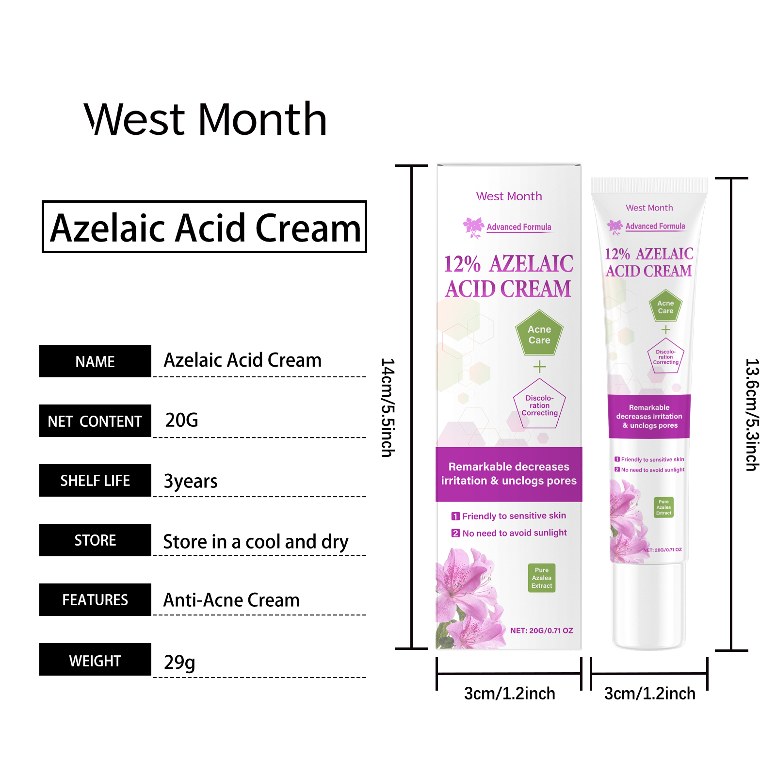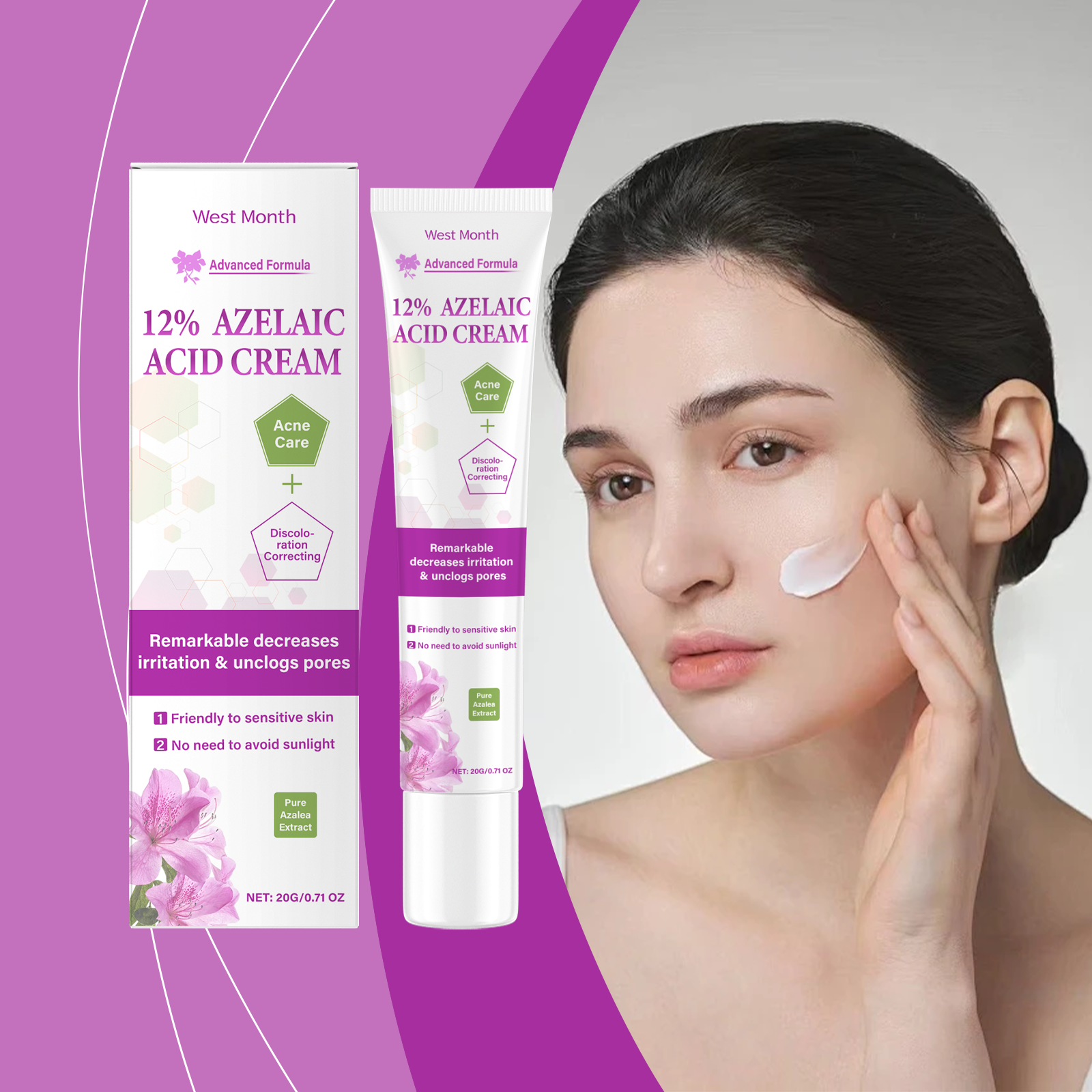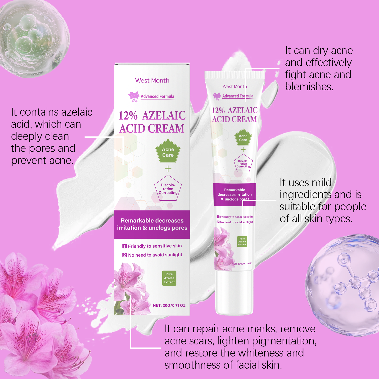 Our azelaic acid cream contains salicylic acid, king's acid and niacinamide. It can regulate sebum secretion, keep skin fresh and not greasy. Soothe skin and repair skin damage after acne. The way to use it is simple: 1. Thoroughly clean and dry your facial skin. 2. Apply proper amount of the product evenly to the acne area; 3. Gently massage until completely absorbed. Contains salicylic acid, effective anti-acne. It can effectively remove acne marks and help skin whiten and smooth.
