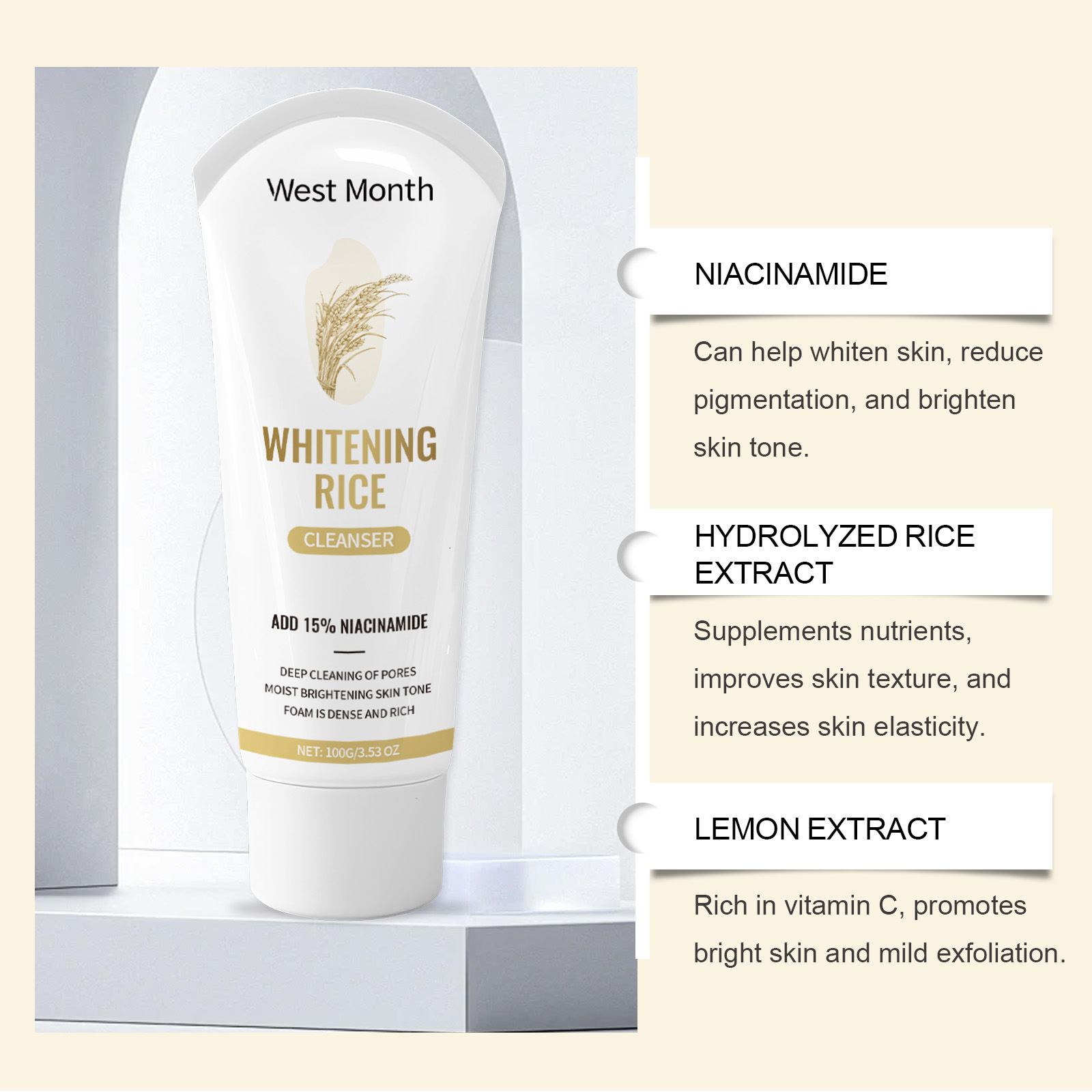 Our blackhead cleansing facial cleanser is carefully formulated with hyaluronic acid, panthenol and lemon fruit extract. Designed specifically for deeply moisturizing the skin and replenishing it with moisture and nutrients. The usage method is extremely convenient: 1. Moisten your face with clean water; 2. Take an appropriate amount of facial cleanser, rub it in your hands to create foam, then evenly apply it to your face, gently massage until it is thoroughly cleaned, and rinse it off with clean water. And it can strongly lock in moisture, keeping the skin as elastic and tender as ever.