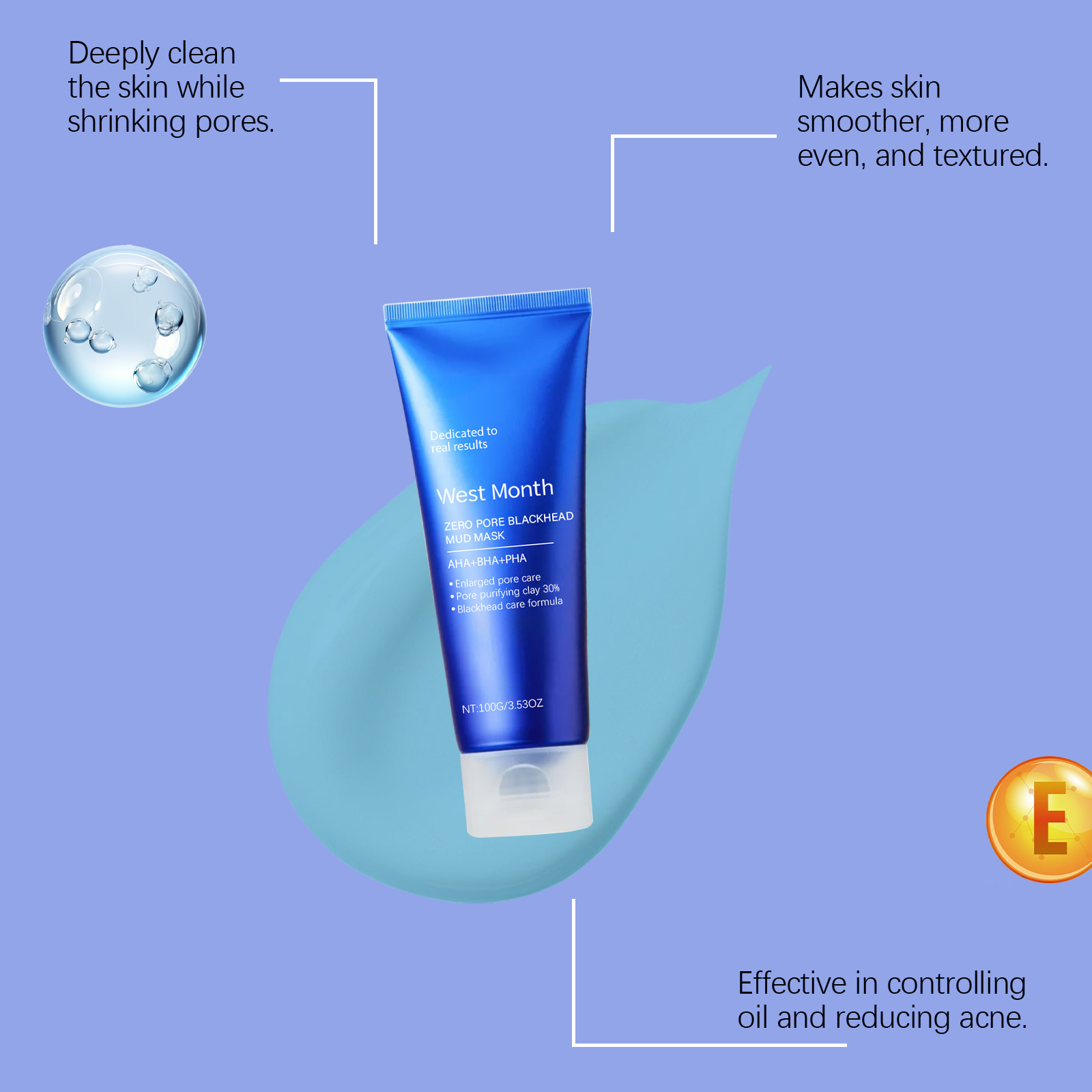Our blackhead smears contain vitamin E (tocopherol) and salicylic acid. It can effectively shrink pores and improve skin texture. Its application method is very simple: apply appropriate amount of this product to the face, avoid the eyes and mouth, wait 3-5 minutes, rinse off with warm water. It can also remove blackheads and whiteheads, leaving skin smoother.