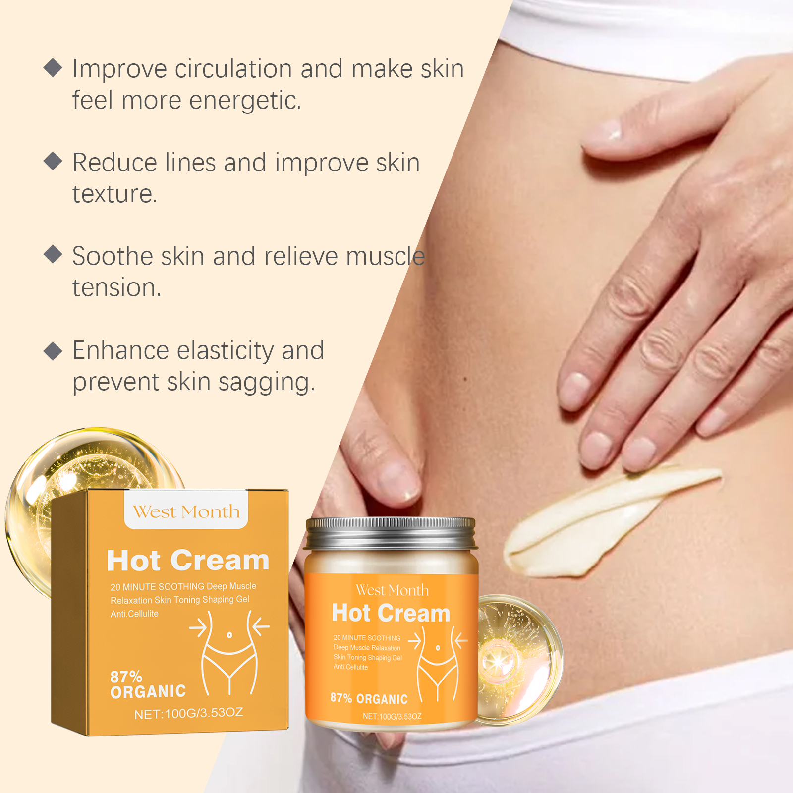 Our body care cream contains ginger extract and sodium hyaluronate. It tightens lines: strengthens the skin and creates tight body curves. The way to use it is simple: clean the skin and keep it dry. Apply appropriate amount of this product evenly on the waist, abdomen, legs and other parts, gently massage in a circular motion. Wait 10-20 minutes to absorb. And can be mild and skin-friendly, refreshing texture, non-sticky, easy to absorb.