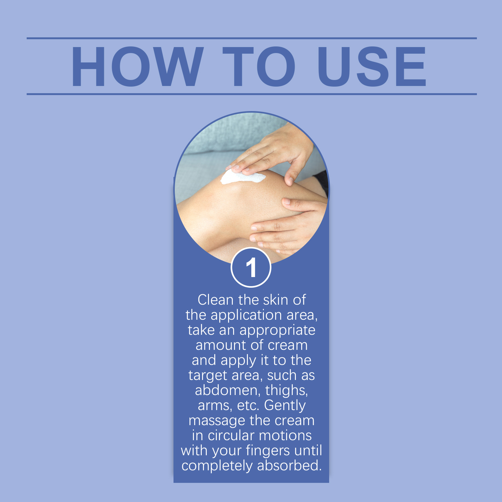 Our body firming lactic acid contains vitamin C, panthenol. It can firm the skin while burning fat, create perfect curves, lazy people must have. Its application method is very simple: clean the skin of the application site and apply appropriate amount of cream to the eyes, target areas, such as the abdomen, thighs, arms and so on. Massage the cream gently with your fingers in circular motions until it is completely absorbed. And can tighten the skin, restore elasticity.