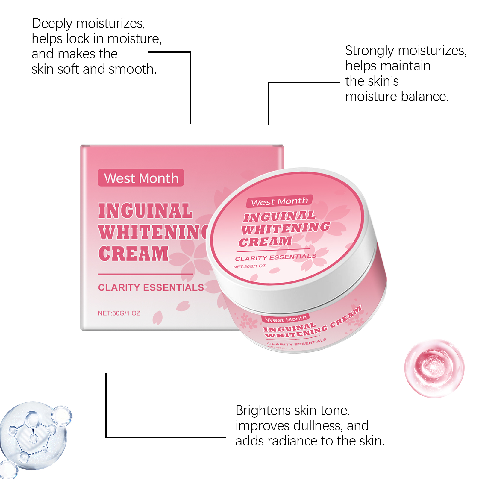 Our body moisturizer contains glycerin, cherry blossom extract, hyaluronic acid. It provides long-lasting moisture and continuous skin protection. Helps to lighten dullness and make skin more radiant. The way to use it is simple: 1. Clean the skin. 2. Apply proper amount of the product to the whole body. 3. Gently massage the eye sockets to promote absorption. Lightweight texture, smooth and comfortable to use. Gives skin lasting moisture and shine, showing confident beauty.