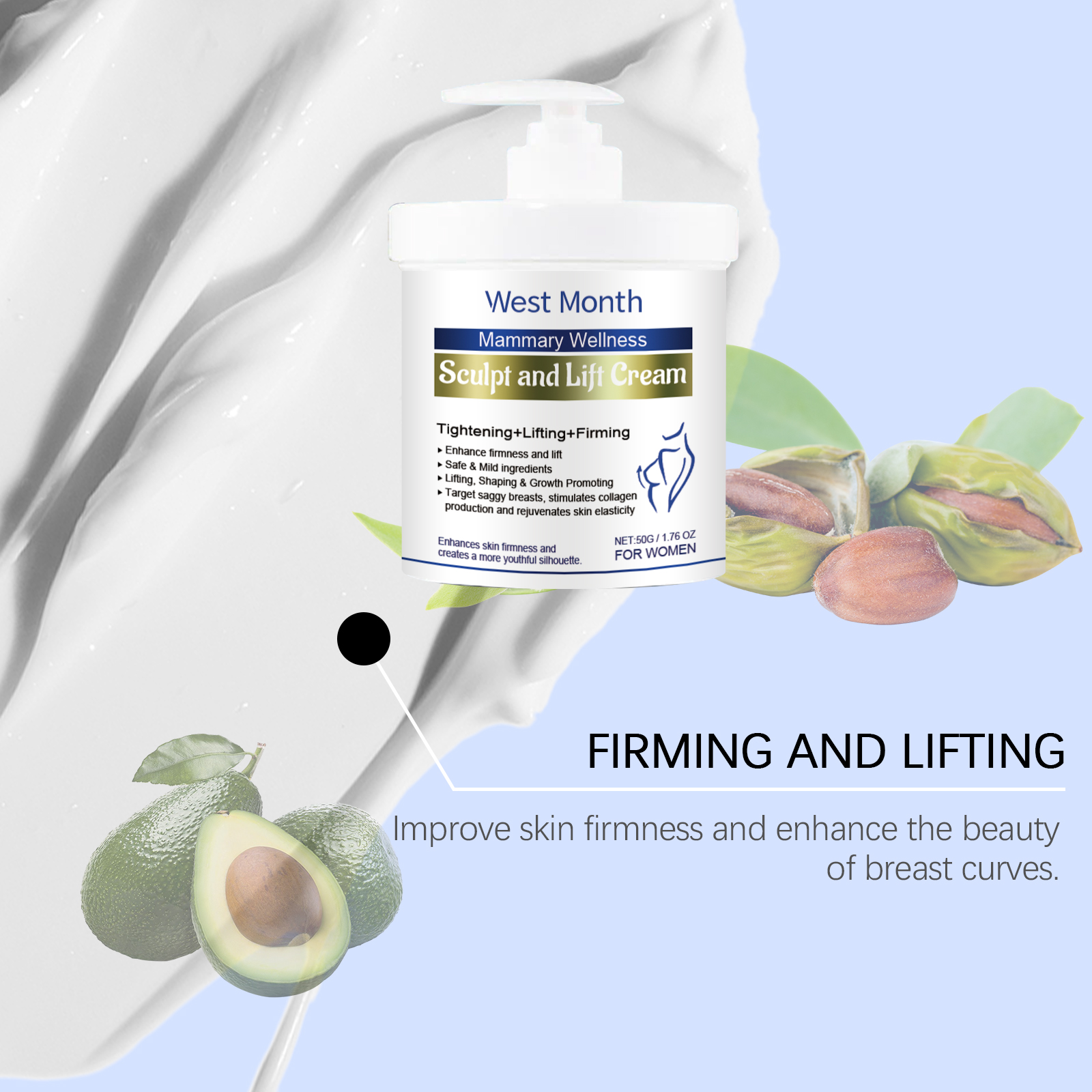 Our breast cream contains Jojoba seed oil, avocado oil, and sodium hyaluronate. It can deeply nourish, repair skin barrier, enhance moisture; Provides long-lasting moisture and leaves skin hydrated and plump. Improves skin elasticity and reduces skin sagging. Its application method is simple: 1. Clean the skin and keep it dry. 2. Apply an appropriate amount of the cream evenly to the chest, neck, arms and other areas, avoiding the nipples as much as possible; 3. Massage upward with your fingertips to promote absorption. Rich oil ingredients moisturize the skin, improve dryness and flabby skin.