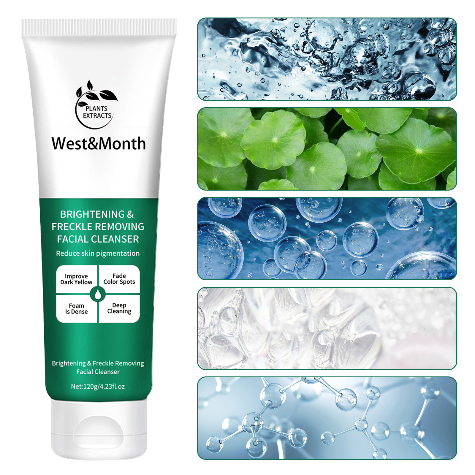 Our Brightening And Freckle-removing Facial Cleanser contains niacinamide, potassium cocoylglycine, and Asiaticum extract. It can lock in skin nutrients and moisture, adjust the balance of water and oil, soothe and astringent skin, inhibit acne, remove excess oil and dirt, and make skin clean and bright. The use method is very simple: after moisturizing the face with warm water, take appropriate amount of this product on the palm and evenly apply it on the face, quickly and automatically lather, gently massage the face in a circular motion for about 1 minute, and then rinse it off with clean water (due to individual differences, please sit and test the local skin first, no discomfort before use; In case of contact with eyes, rinse immediately with plenty of water). Deep cleaning, moisturizing skin, blooming fresh and moisturizing skin.