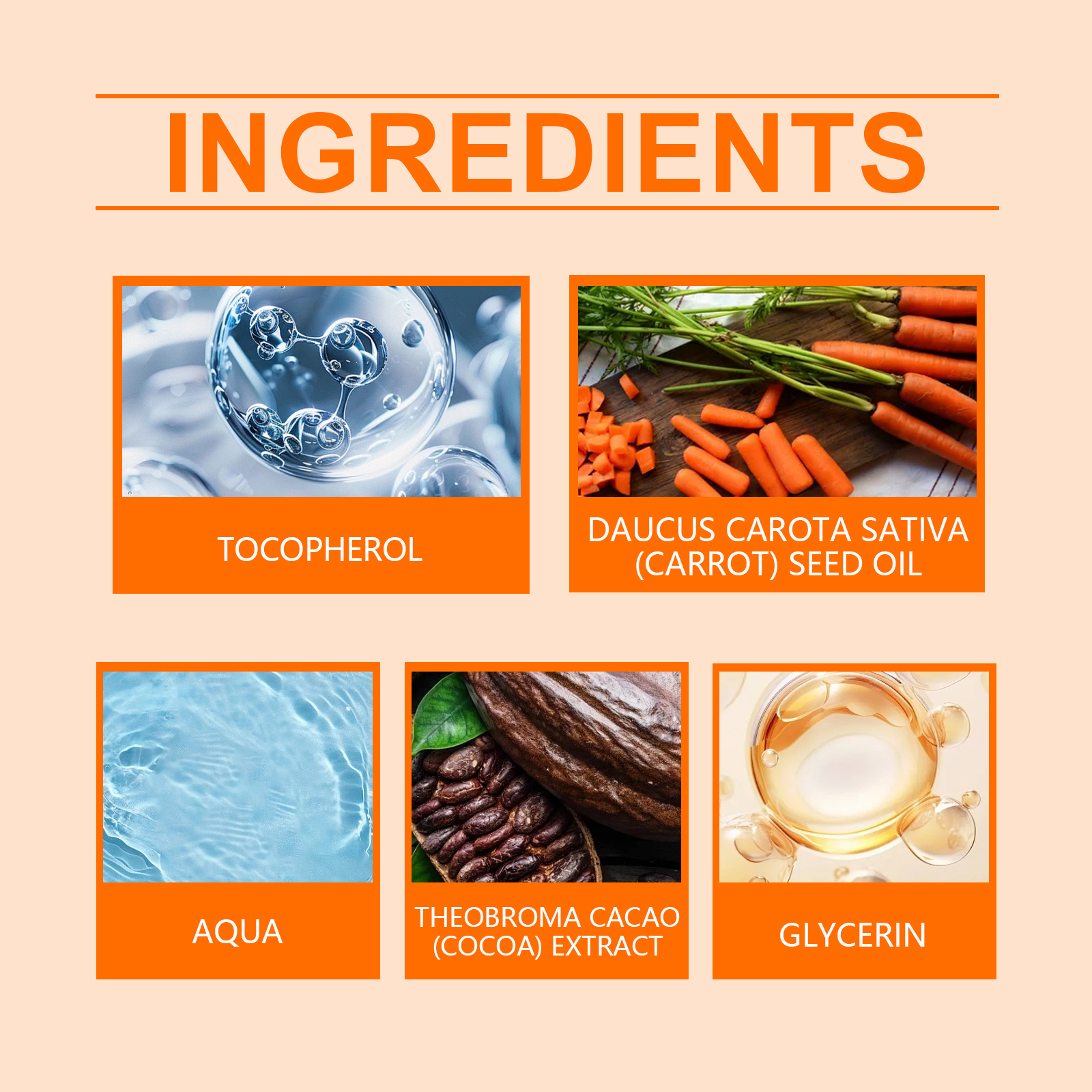 Our Carrot Black gel contains cocoa extract and vitamin E. It can help speed up tanning and easily achieve the desired skin tone. Its application method is very simple: before using exfoliating cream, apply appropriate amount of this product evenly on the whole body in a circular motion, gently massage until completely absorbed. It also moisturizes the skin and keeps it soft and smooth.