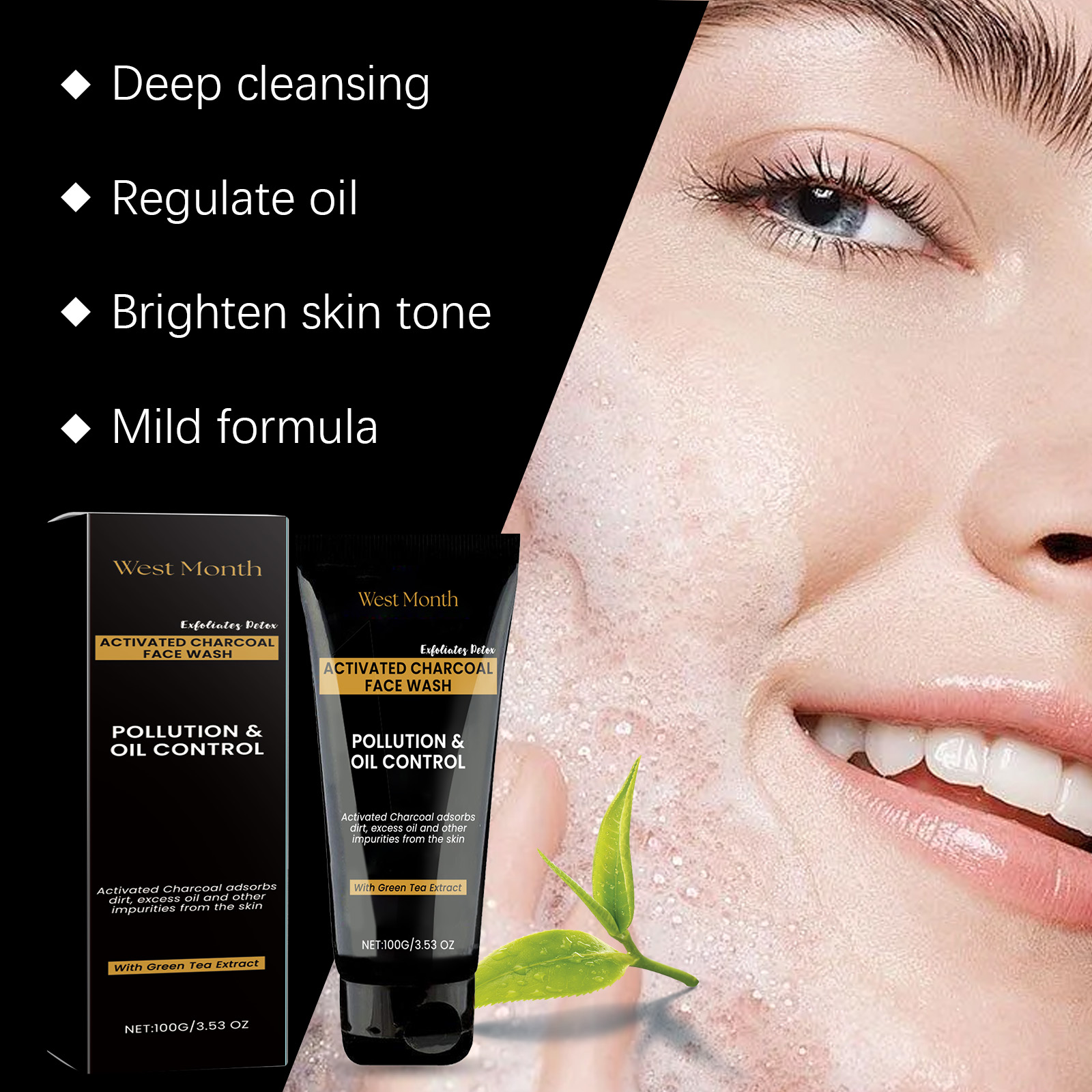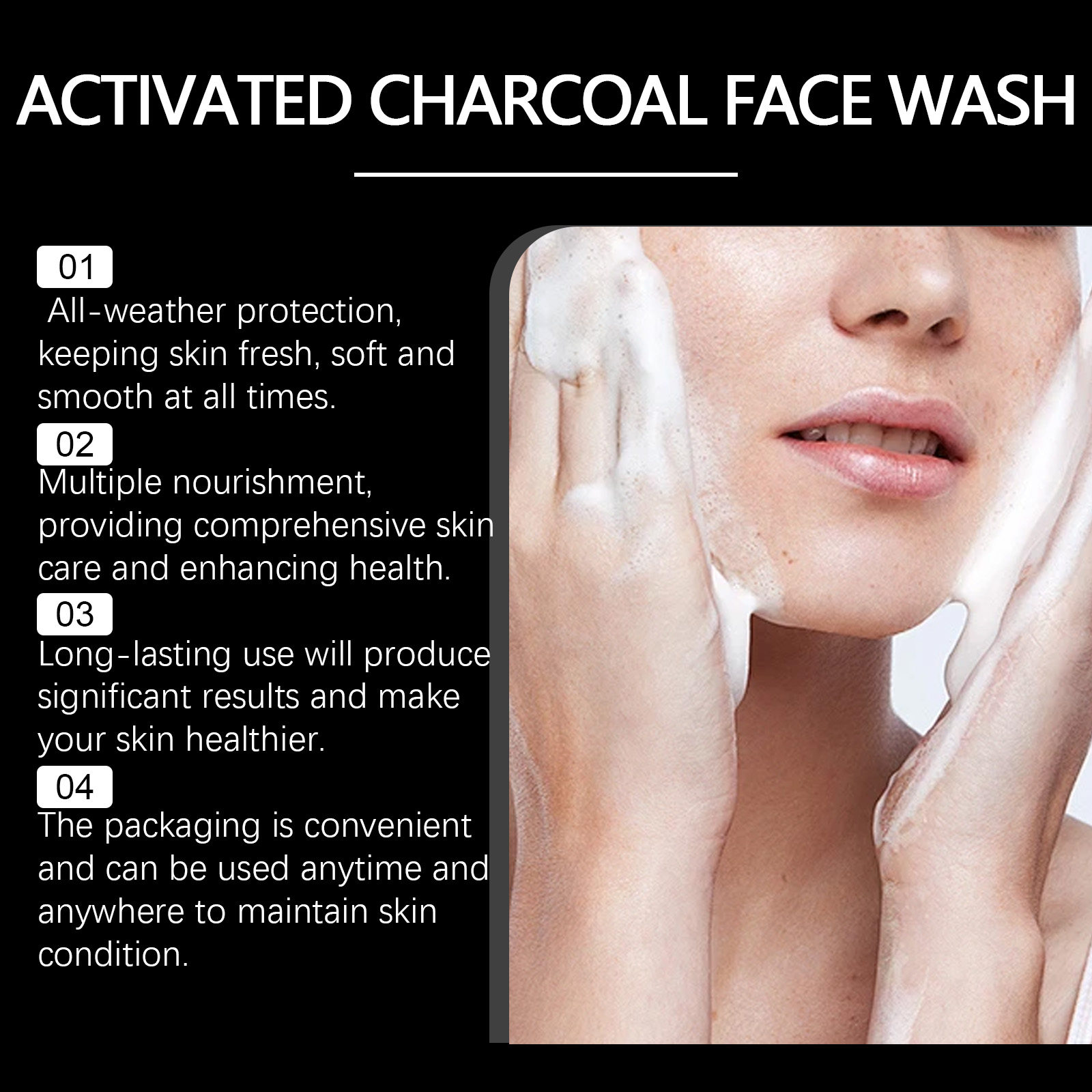 Our activated carbon cleanser contains glycerin, cocamidopropyl betaine. It can improve the skin and make your face brighter and more radiant. Its application method is very simple: moisturize facial skin, apply appropriate amount of this product evenly on facial skin, gently clean facial skin with circular way and rinse off with water. And can adjust the skin oil balance, keep fresh and not greasy.