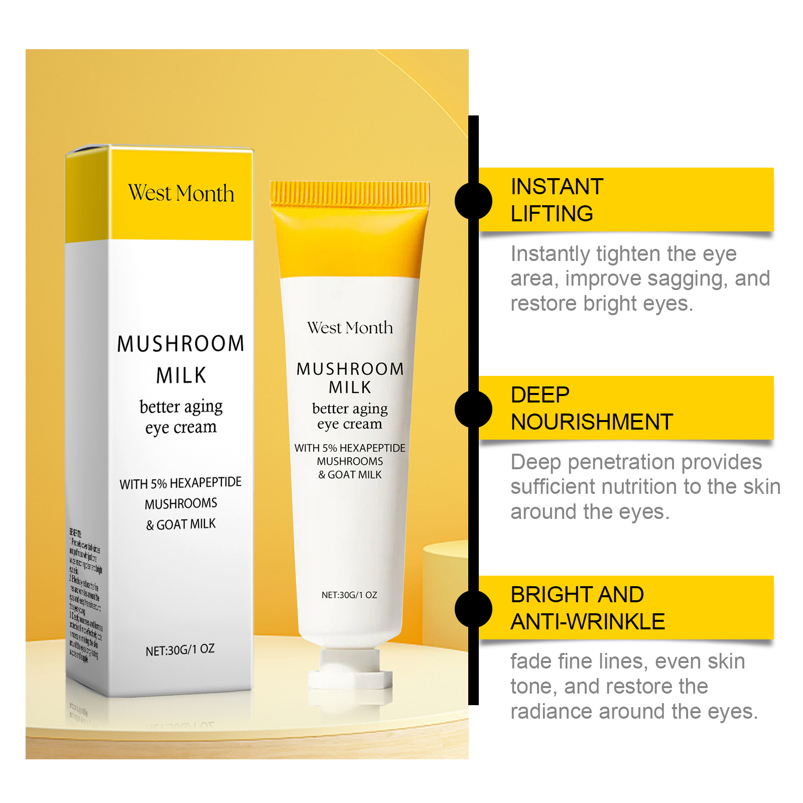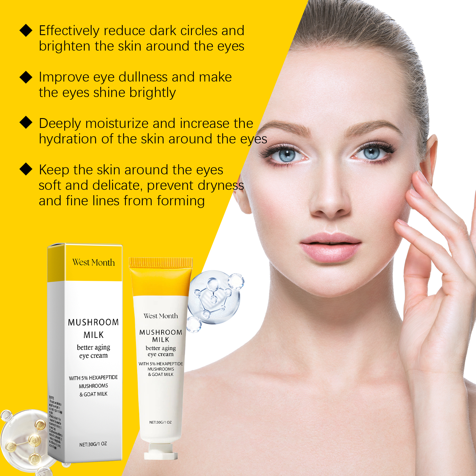 Our firming and moisturizing eye cream contains niacinamide, acetyl hexapeptide-8. It hydrates effectively, locks in moisture, improves dryness and keeps it soft. Reduce fine lines, maintain a youthful look and brighten the eye area. Its application is simple: clean and dry the skin around your eyes. After using this product, squeeze out appropriate amount of cream and gently rub the skin around the eyes to promote absorption. It can also smooth the eye area and improve the suitability of subsequent cosmetics.