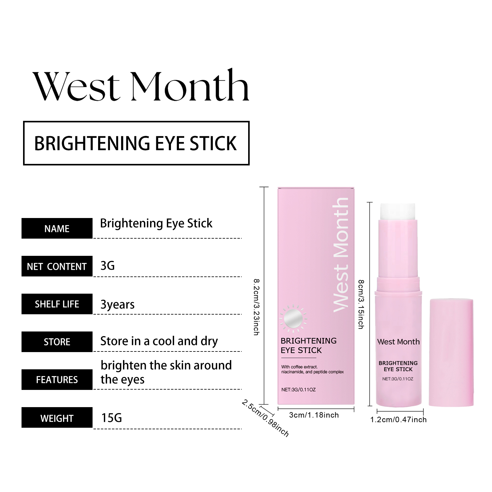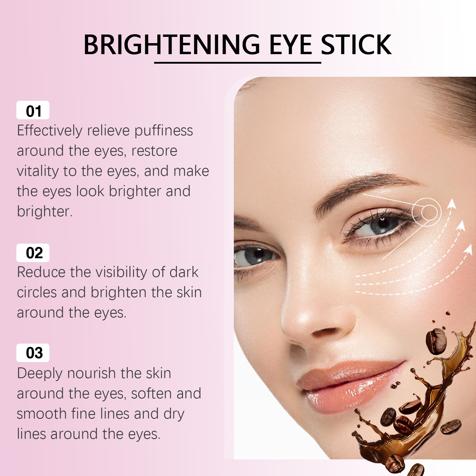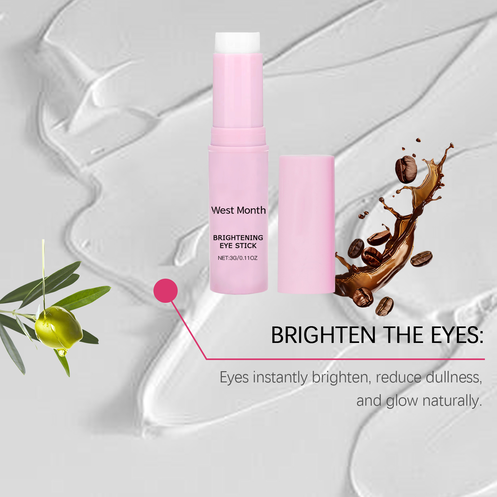 Our firming eye cream sticks contain Jojoba seed oil, coffee extract, and rose water. It can deeply moisturize the skin around the eyes and improve elasticity. Helps to improve dark circles and brightens the skin around the eyes. Its application method is very simple: 1. Clean the skin around the eyes and gently dry it. 2. Gently apply the cream to the entire eye area. 3. Gently pat around the eyes to promote absorption. Long-lasting moisture prevents dryness around the eyes and keeps skin soft. Easy to roll design, easy to use, suitable for daily skin care.