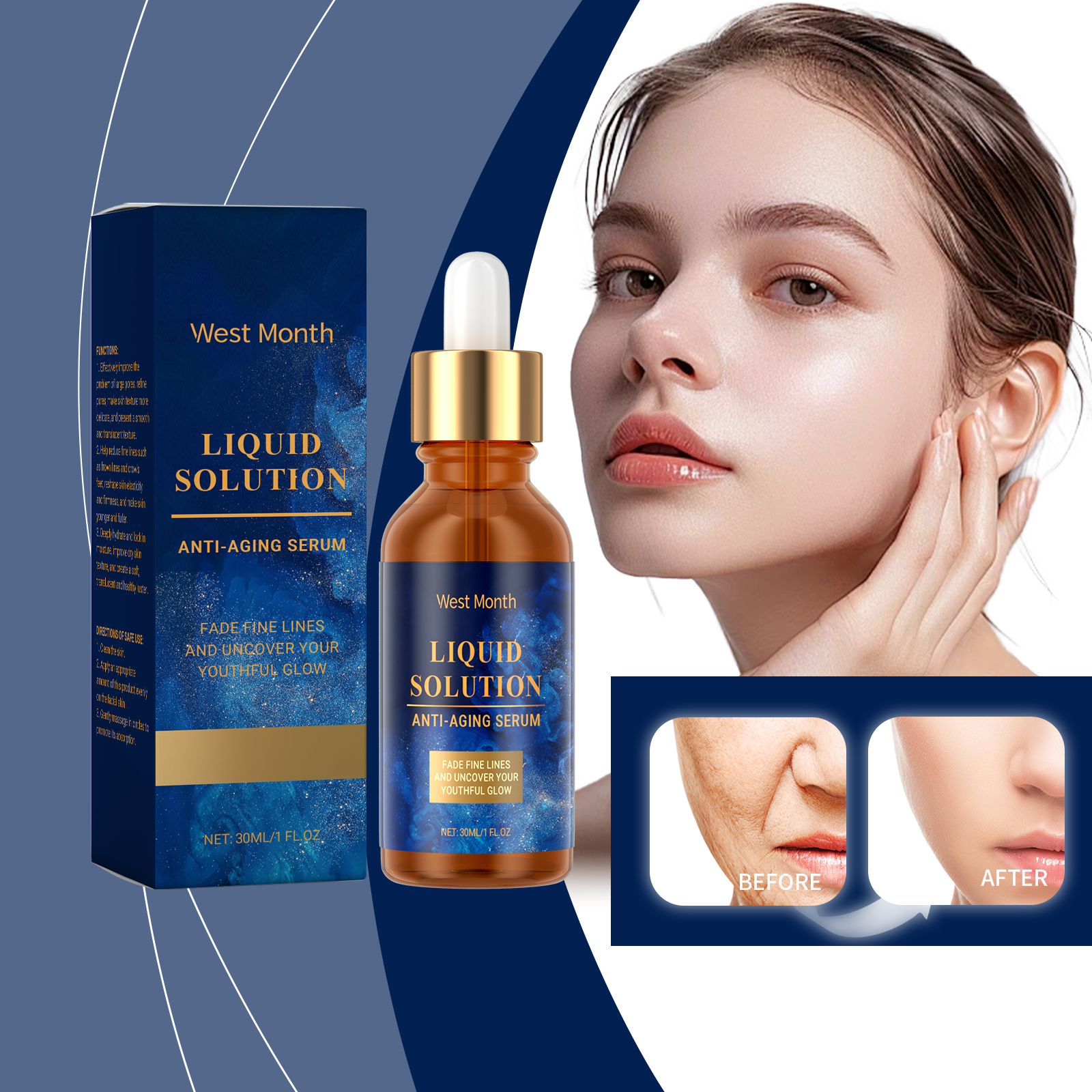 Our face serum contains hydrolyzed collagen, hyaluronic acid and vitamin E. It can improve enlarged pores, even skin texture, effectively reduce expression lines and fine lines, and make skin younger and more elastic. The way to use it is simple: clean the skin. Apply appropriate amount of the product evenly on the face. Massage gently in circular motions to promote absorption. It can also reshape skin firmness, help keep facial contours clear and moisturize continuously, improve dry skin texture and increase softness.