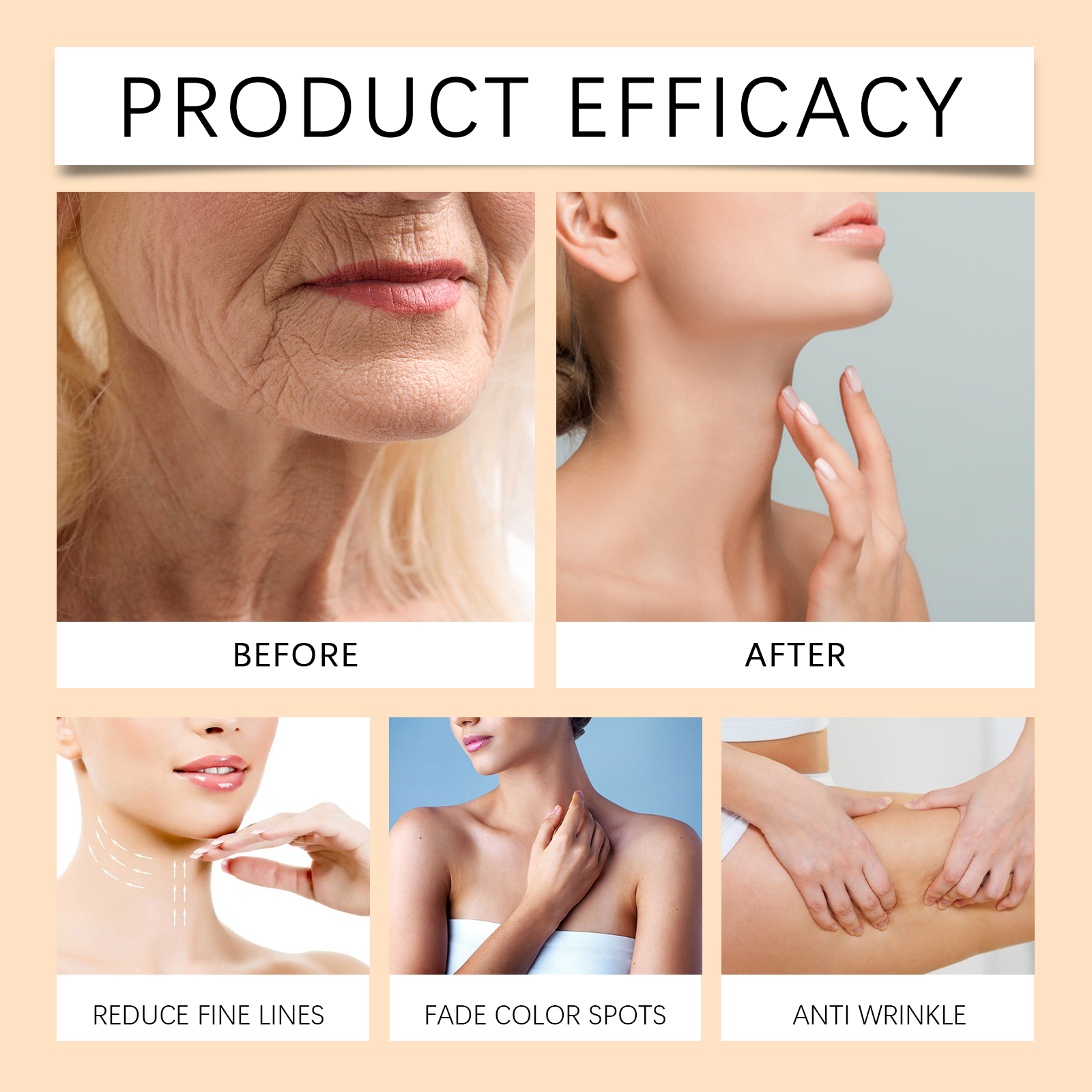 Our firming cream contains sodium hyaluronate, palmitoyl tetrapeptide-7. It can effectively reduce fine lines and wrinkles, smooth the signs of aging, look more youthful, increase skin shine, brighten skin tone, and make skin glow. Its application method is simple: thoroughly clean and dry the skin, take a proper amount of this product evenly apply to the skin of the neck, legs, abdomen, arms and other parts of the body. Massage gently to promote complete absorption. It can also help repair damaged cells, accelerate skin regeneration and restore vitality.